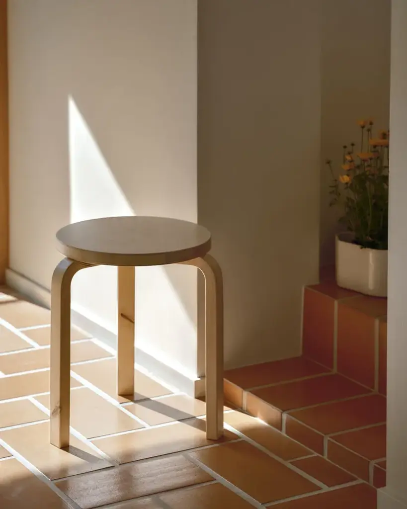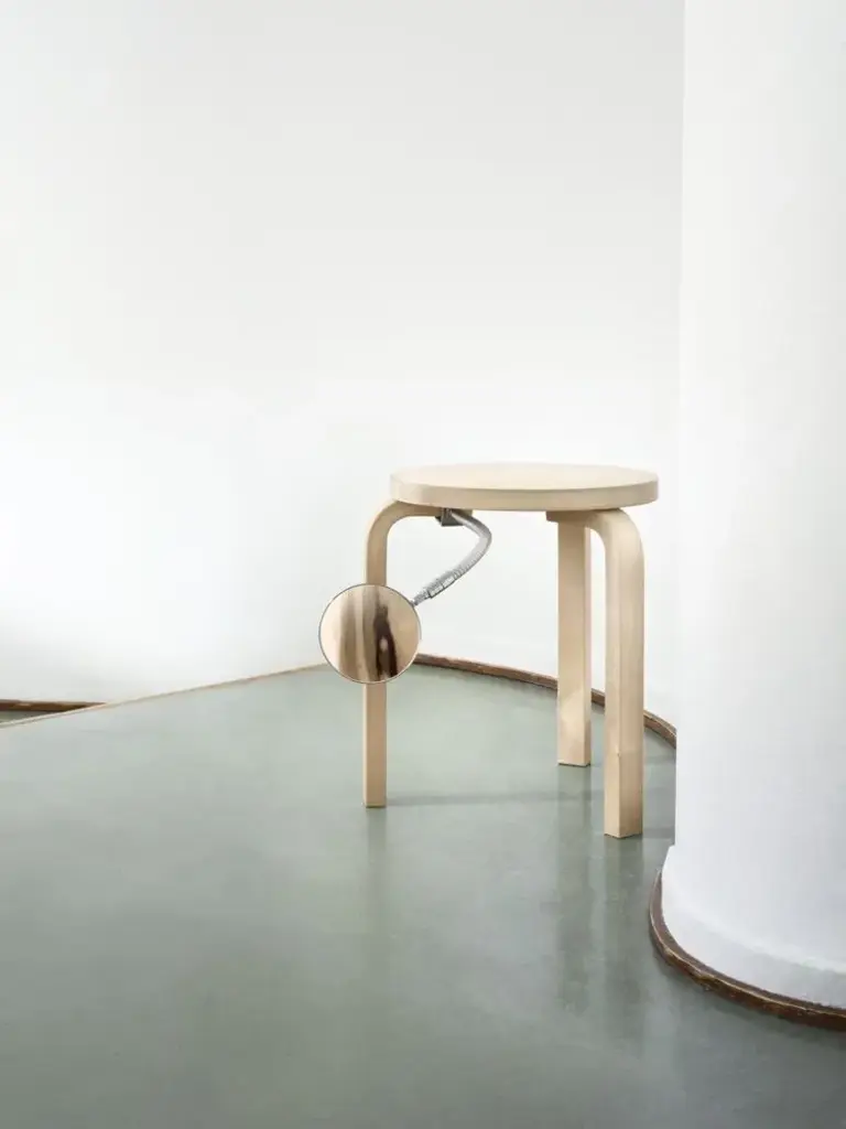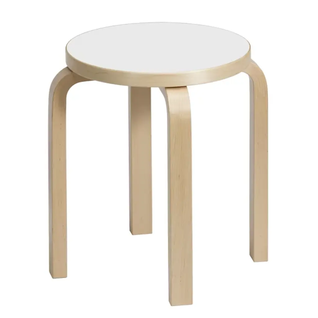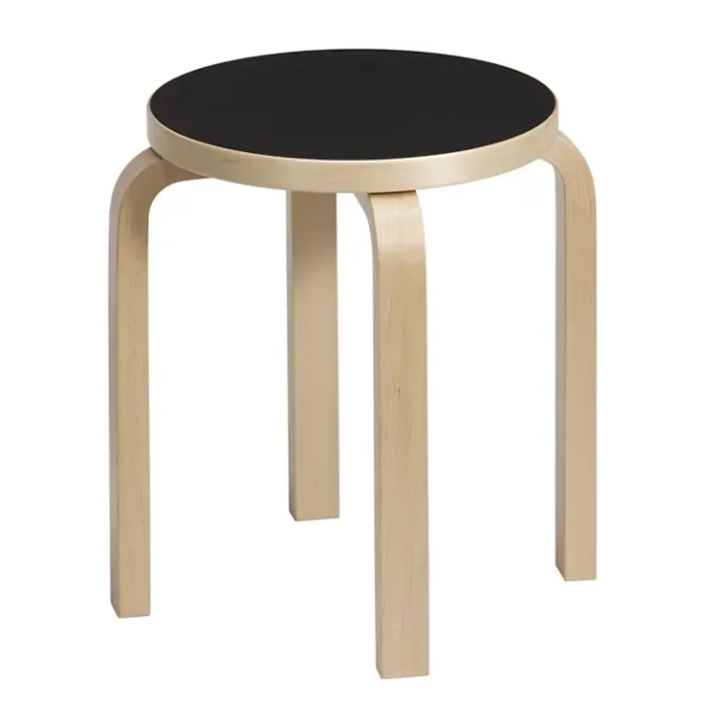 Alvar Aalto’s four-legged Stool E60 is the most elemental of furniture pieces, equally suitable as a seat, table, storage unit, or display surface. Projecting a sense of relaxed familiarity, Stool E60 is equally suited to the home, public buildings, and educational facilities. The legs are mounted directly to the underside of the round seat without the need for complicated connecting elements. Thanks to its geometry, the stool can be stacked to save space in a spiralling tower sculpture.Reintroduced in 2024 by Formafantasma in an unprecedented wild birch variant.The Forest Collection is part of an ongoing collaboration between Artek and Formafantasma, an Italian design studio that investigates how environmental, political and social forces influence design today. With the launch of the 'wild birch' variants of the Stool 60 and E60 originally launched in 2023 - they will be updated to become even wilder. While the Stools currently only show natural marks on the legs, all Stool 60 and E60 in 'wild birch' will in future also feature insect marks and small knots on their upper surfaces, as well as a matt finish. The update will apply to all 'wild birch' variants of the Stool 60 and E60 produced from 25 April 2024 onwards.