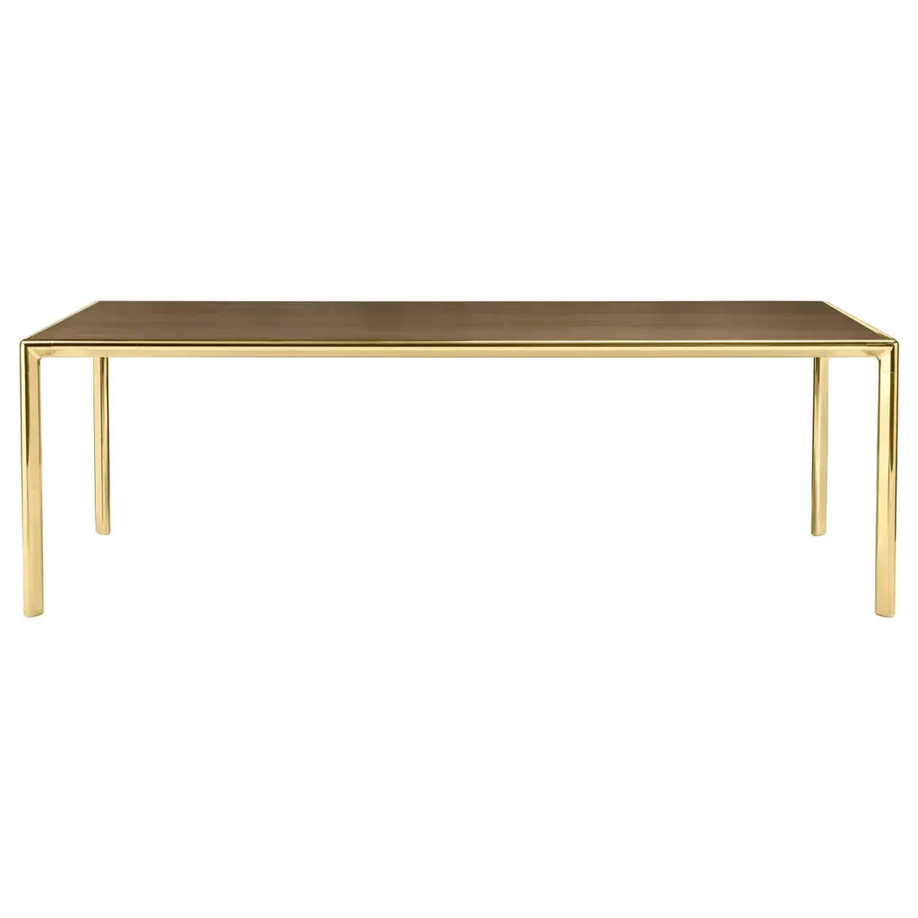 Stefano Giovannoni designs Frame for Ghidini1961, a new collection composed of sofas, armchairs, dining and coffee tables, bookshelves and cabinets. Everything starts from a simple element: "the joint", which, combined with elegant rounded 45 degrees extrusions, creates an almost infinite family.The collection is characterized by organic junctions that – in their possible combinations – create minimal, compact and powerful structures. Frame is built starting from few elements that are able to create a large family with essential lines. Small tables and storage units are played with different materials, such as glass, wood and marble, while the sofa has a leather structure and fabric cushions.Structure: Die casted aluminium on the angular elements and tubular aluminium for the supporting structure on the perimeter.Top Finishes: 20mm marble, 30mm wood.Additional Information:Material: Brass, calacatta gold marbleFinish: Polished brassTop: Calacatta gold marbleDimensions: W 240 x D 120 x H 77 cmAvailable in other size options: Small and largeAvailable in other wood top finish option: Striped oak, canaletto walnut, bolivar, new lime, caleido, mahoganyAvailable in other marble top options: Carrara white, emperador dark, sahara noir, eramosa brownAvailable in other finish options: Satin brass, light burnished brass, brown burnished brass, dark burnished brass, black gold