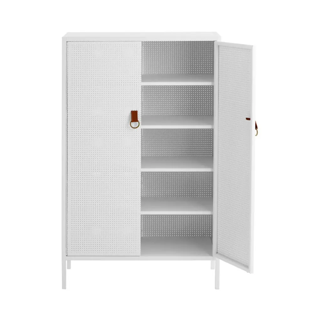 Maze’s Francis cabinet is a stylish and practical storage unit for any room of your home. Designed by Louise Hederström, the cabinet is crafted from perforated metal and finished with leather details that add a distinctive touch to the design. A beautiful combination of classic and contemporary appeal, Francis is well suited for a variety of spaces and purposes. And if functionality is what you desire, Francis is perfect for you: the detachable shelves allow you to modify the cabinet to your needs, and the cabinet legs make vacuuming the floor underneath Francis easy as pie. The Francis cabinet is part of Maze’s Pieces collection that features Swedish-made furniture crafted following the brand's Slow Production thinking: the aim is to support local production using sustainable materials and methods. Each piece in the collection is made in small editions and crafted with the utmost care – they are made to be loved and cherished for decades to come.