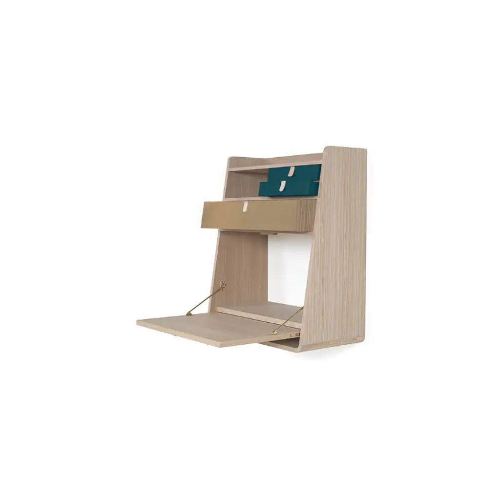Gaston Wall Desk, 60 Cm, Oak - Brass - Petrol Blue