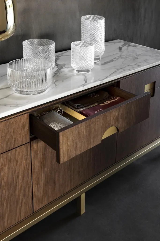 Ghidini 1961 Zuan Dining Cabinet In Oak And Calacatta Marble By P. Rizzatto