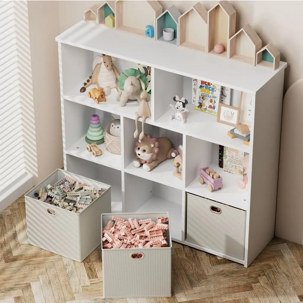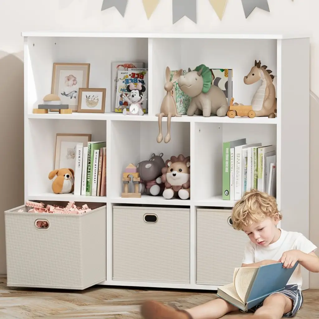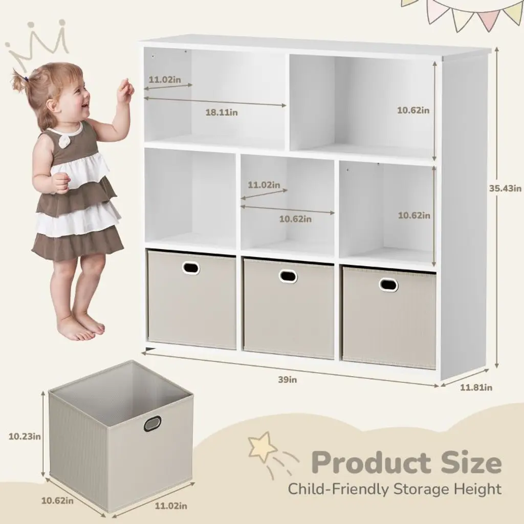 Kids Bookshelf & Toy Organizer, Smart Storage for Small Spaces!Make cleanup easy and fun! This kid-friendly storage unit features 3 large drawers and 5 open shelves, perfect for books, toys, art supplies, and more. At just 35.4" high, it is easy for little ones to reach and organize all by themselves.Great for toy storage, books, and display.Encourages reading and independence.Fits perfectly in playrooms, bedrooms & small spaces.Assembles in 30 minutes, tools included.Safe, sturdy, and stylish, this organizer is a must-have for any playroom or reading corner. Add it to your cart and bring order to the chaos!SPECIFICATIONSBookcase Type: Cube BookcasesMaterial: WoodFeatures: StackableRecommended Room: Kids Room, Office, Living Room, Classroom, Game Room, BedroomSize: 39" x 11.81" x 35.43"PACKAGING INCLUDES1 x Kids BookshelfCONTACT USIf you have any problems with our items or services, please feel free to contact us any time.We are always online and do our best to solve your problems and provide you with the best customer services.