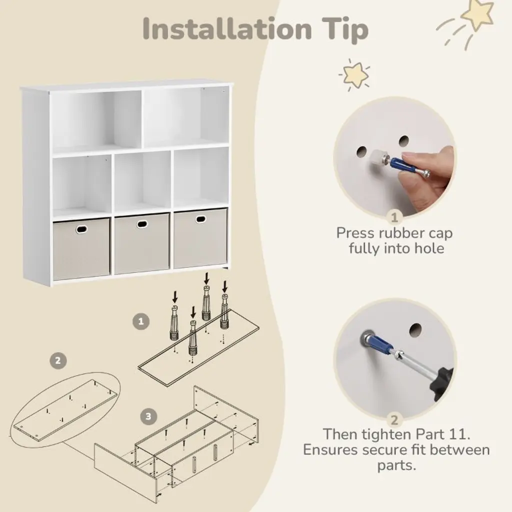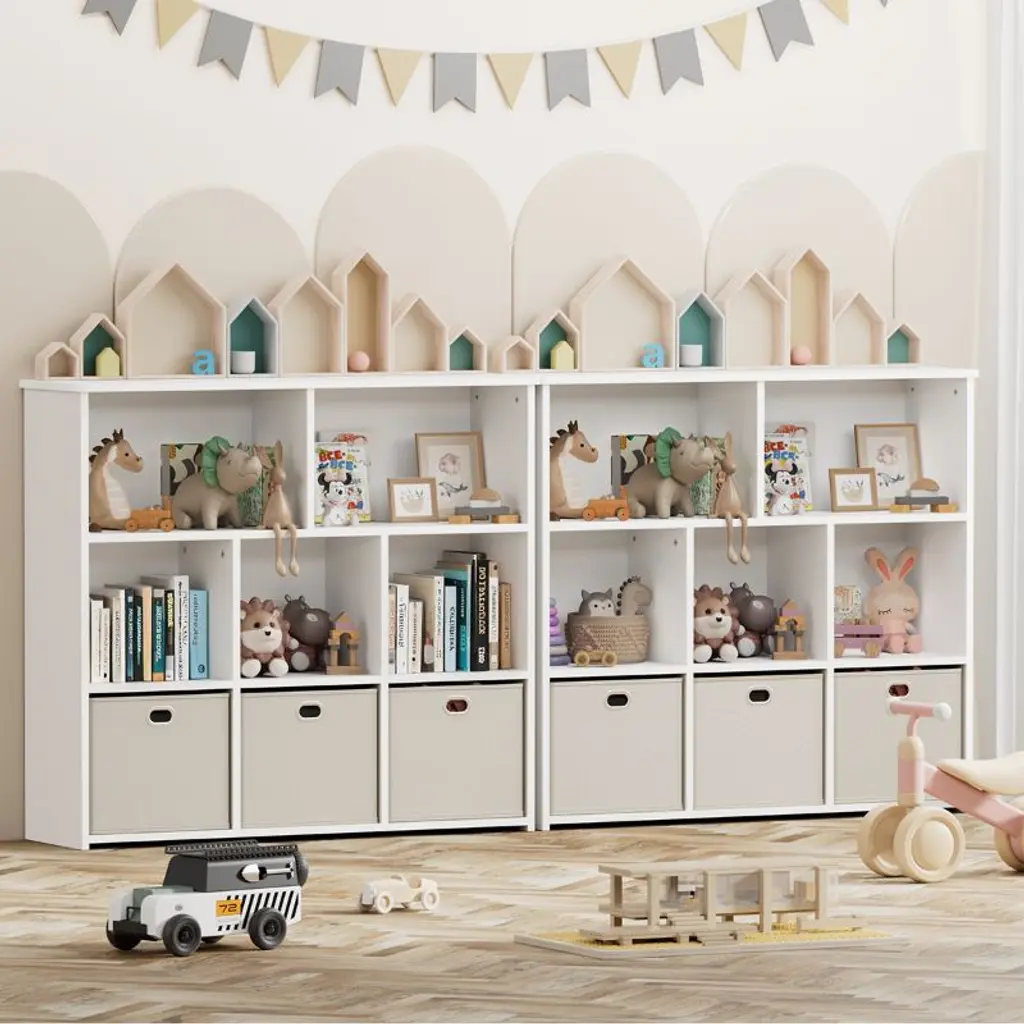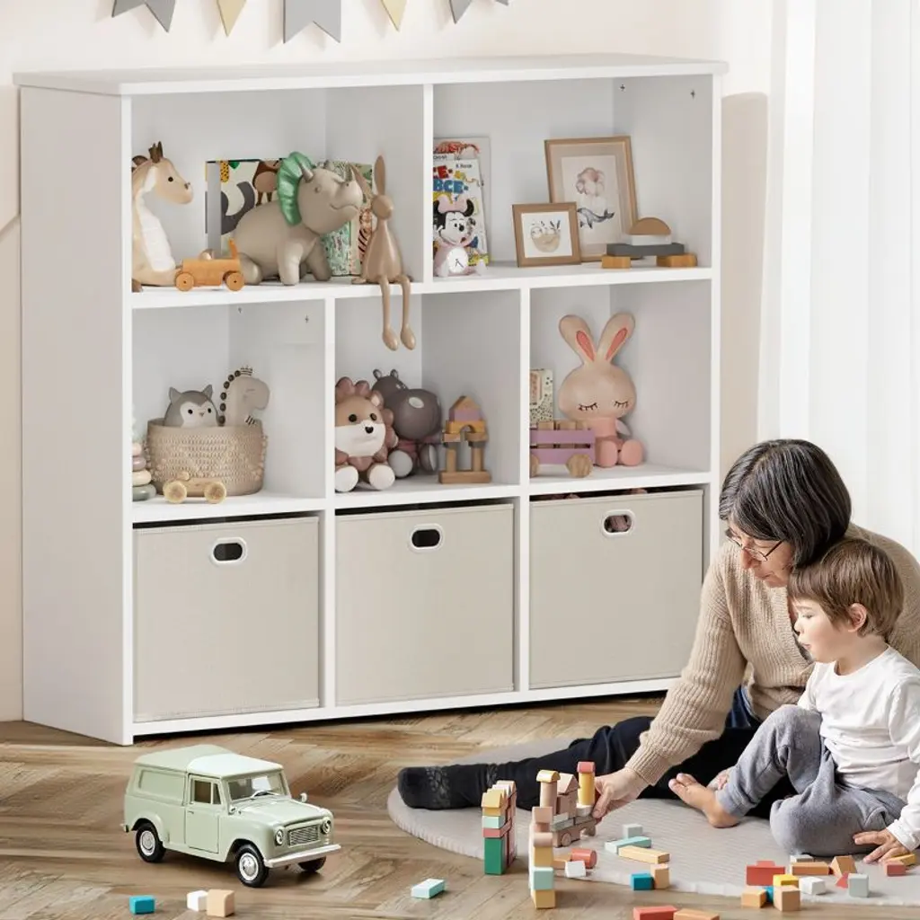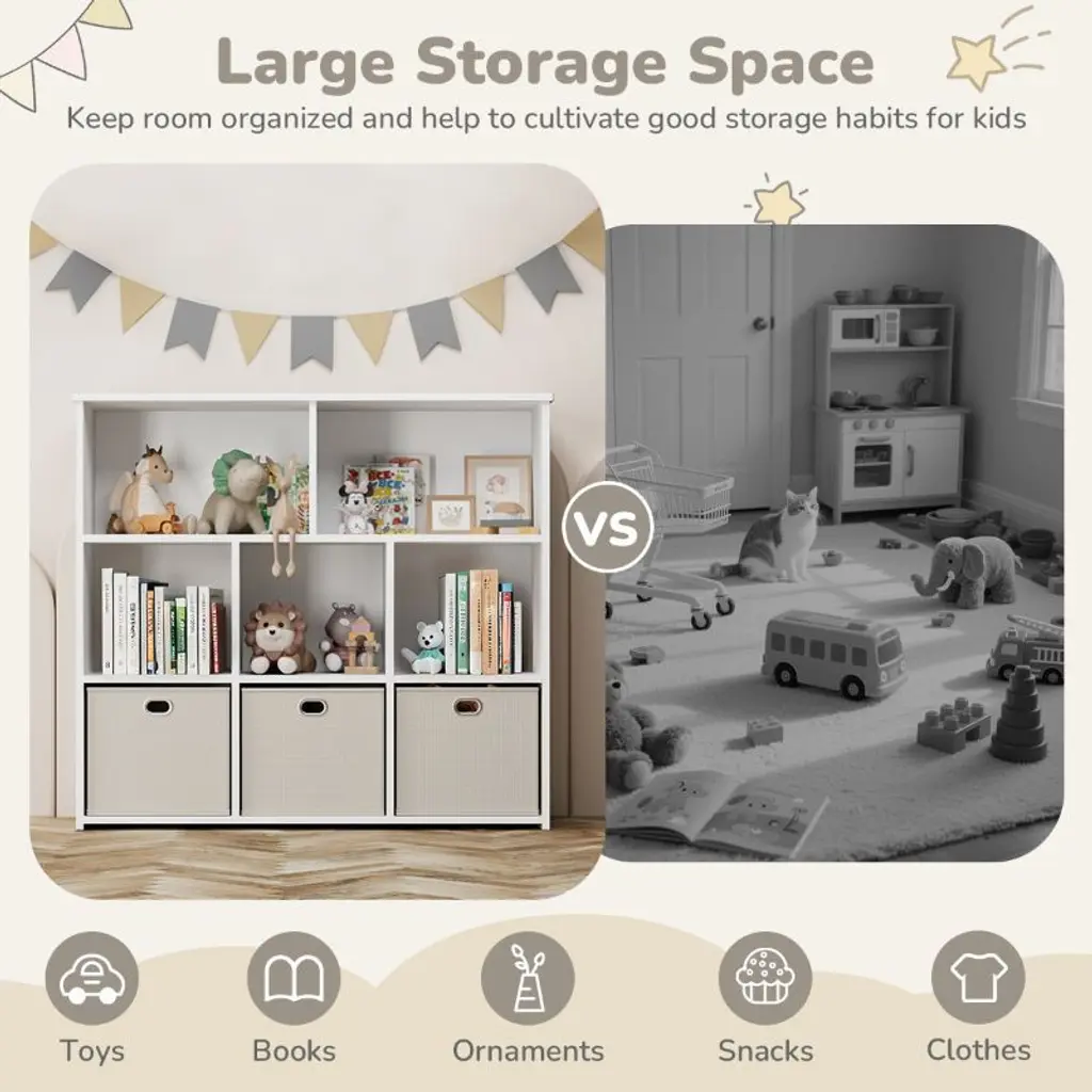 Kids Bookshelf & Toy Organizer, Smart Storage for Small Spaces!Make cleanup easy and fun! This kid-friendly storage unit features 3 large drawers and 5 open shelves, perfect for books, toys, art supplies, and more. At just 35.4" high, it is easy for little ones to reach and organize all by themselves.Great for toy storage, books, and display.Encourages reading and independence.Fits perfectly in playrooms, bedrooms & small spaces.Assembles in 30 minutes, tools included.Safe, sturdy, and stylish, this organizer is a must-have for any playroom or reading corner. Add it to your cart and bring order to the chaos!SPECIFICATIONSBookcase Type: Cube BookcasesMaterial: WoodFeatures: StackableRecommended Room: Kids Room, Office, Living Room, Classroom, Game Room, BedroomSize: 39" x 11.81" x 35.43"PACKAGING INCLUDES1 x Kids BookshelfCONTACT USIf you have any problems with our items or services, please feel free to contact us any time.We are always online and do our best to solve your problems and provide you with the best customer services.