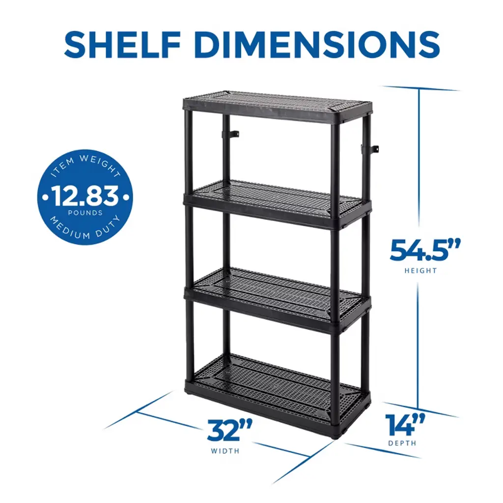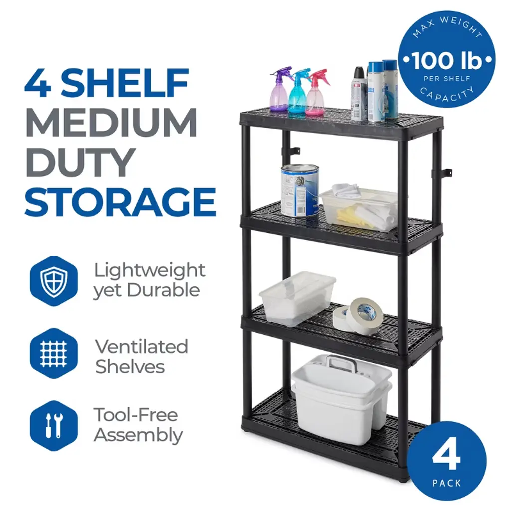 Gracious Living 4 Shelf Fixed Height Medium Duty Storage Unit 14 X 32 X 54.5" Organizer System For Home, Garage, Basement, & Laundry, Black (4 Pack)