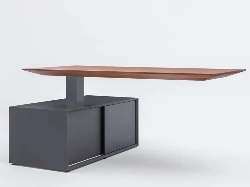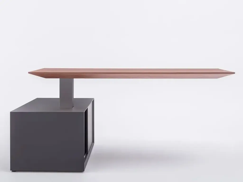 It’s against gravity but still sturdy and comfortable – the Gravity collection takes the idea of an executive desk to a whole new level. Inspired by the essence of modern architecture, the minimalist form of the Gravity range is fully integrated with technology. With large worktop supported on one leg and invisible structure, it brings a levitating surface to mind. Electric height adjustment system ensures ergonomics of the desk and a smooth change of working position from seated to standing. Height adjustable conference table, coffee table, shelving unit and modular storage units complete the Gravity range. It’s a bold proposition designed with contemporary leaders in mind.