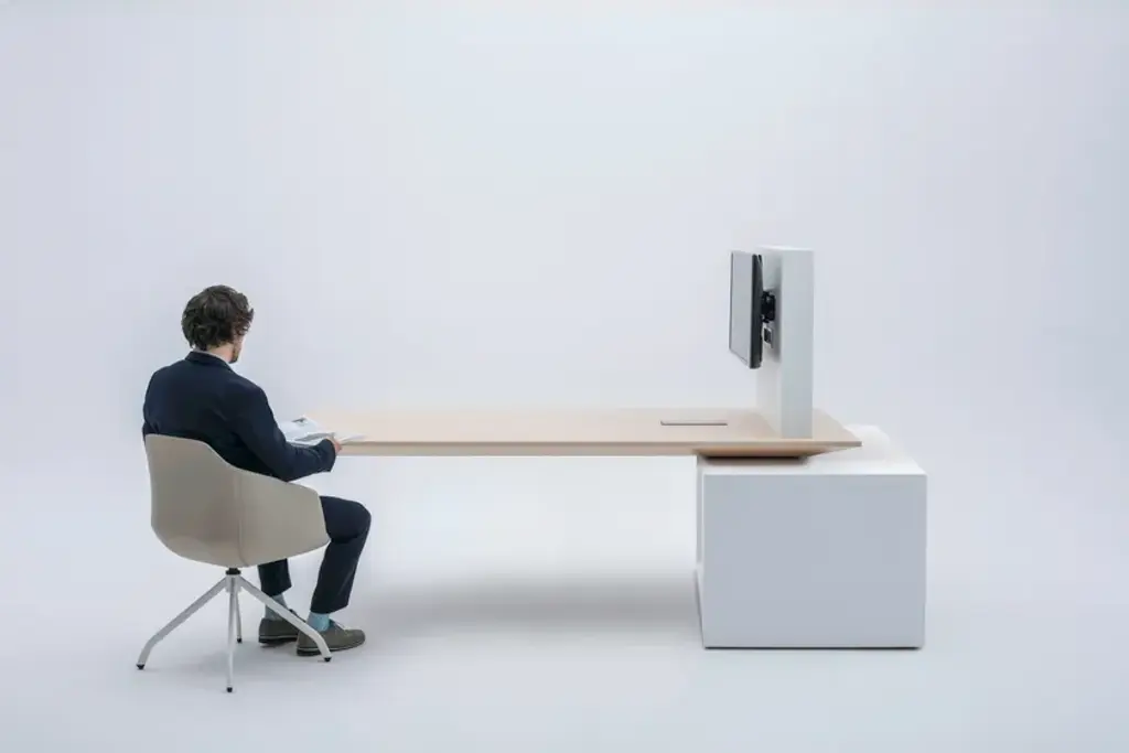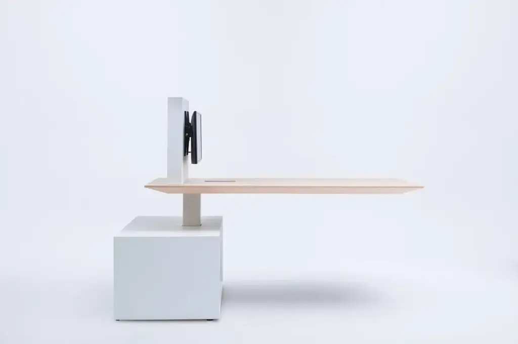 It’s against gravity but still sturdy and comfortable – the Gravity collection takes the idea of an executive desk to a whole new level. Inspired by the essence of modern architecture, the minimalist form of the Gravity range is fully integrated with technology. With large worktop supported on one leg and invisible structure, it brings a levitating surface to mind. Electric height adjustment system ensures ergonomics of the desk and a smooth change of working position from seated to standing. Height adjustable conference table, coffee table, shelving unit and modular storage units complete the Gravity range. It’s a bold proposition designed with contemporary leaders in mind.