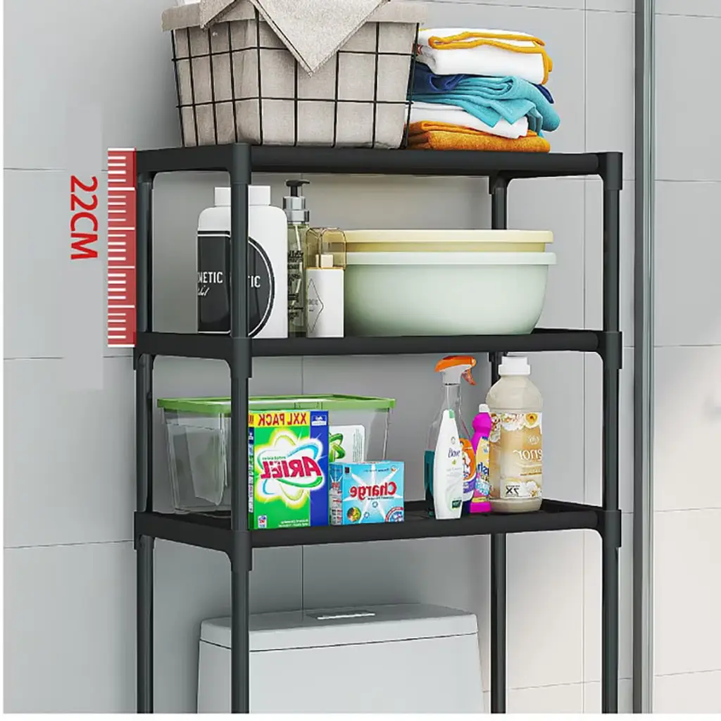 This 3-tier freestanding over-the-toilet storage unit is an ideal solution for maximizing limited vertical space in small bathrooms. Made from thick iron tubing with a waterproof coating, it offers sturdy, rust-resistant support with a wide base for enhanced stability. The open shelves provide ample storage for towels, toiletries, and more, while the included no-punch adhesive anti-tip kit ensures safety without damaging walls. Versatile and easy to install, it can also be used over washing machines or as a decorative display on balconies.