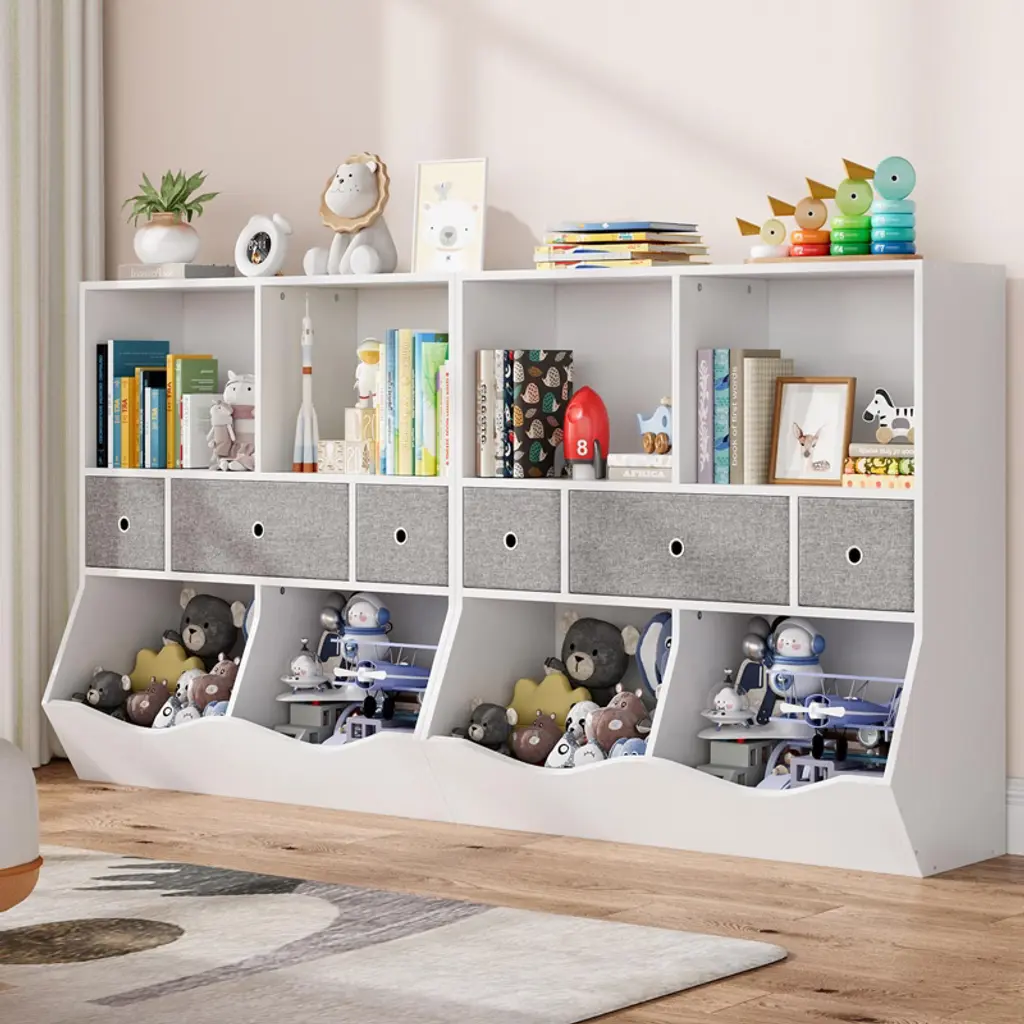 Gustowave Kids Bookshelf And Toy Storage,4-cubby Book Shelf For Kids Rooms Decor,3-tier Woodn Toy Organizer With Bookcase,white