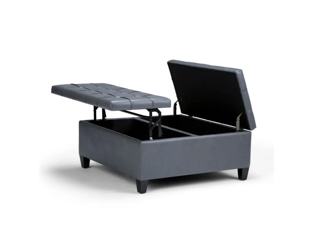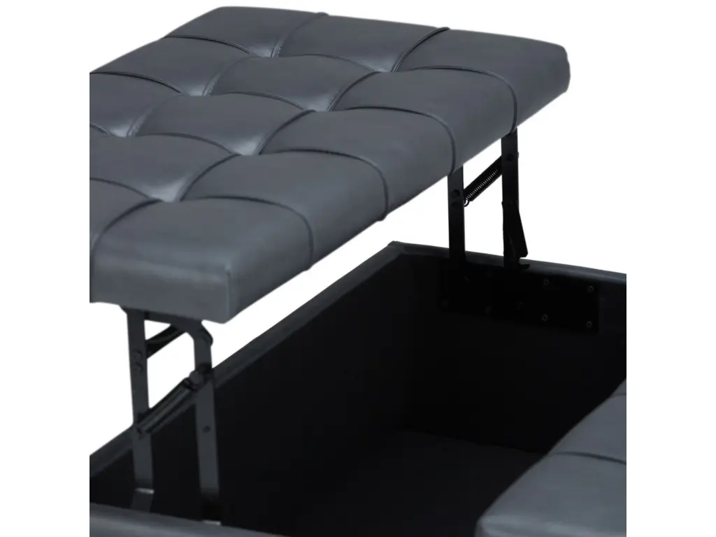 Why sacrifice function for beauty. When you are looking for a tasteful, well-made storage solution and extra seating, look no further than this lift-top storage ottoman. Made from durable leather look upholstery, it’s extra strong and sturdy with an expertly stitched exterior and a large storage interior. Whether you are using it as an eating surface, a storage unit or just to put your feet up, this ottoman is a pretty and practical piece of furniture.