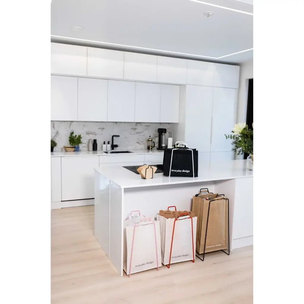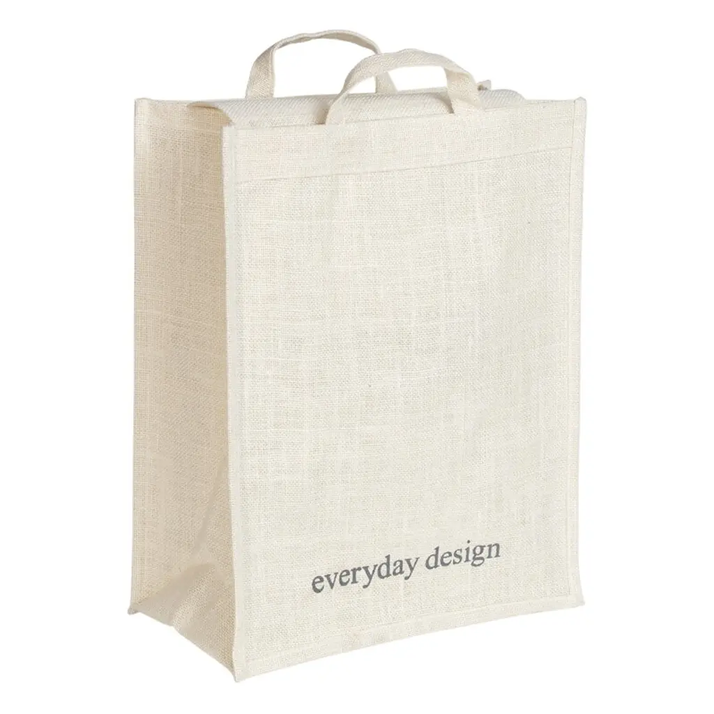 Everyday Design's Helsinki jute bag complements the look and functionality of the Helsinki paper bag holder. The sustainable bag is a handy helper for collecting bottles, cardboard and other recyclable items, but can also be used on its own as a shopping bag or a storage unit. The jute bag features a minimalist Everyday Design logo on the other side as well as a handy flap on the inside to hide its content from curious eyes.