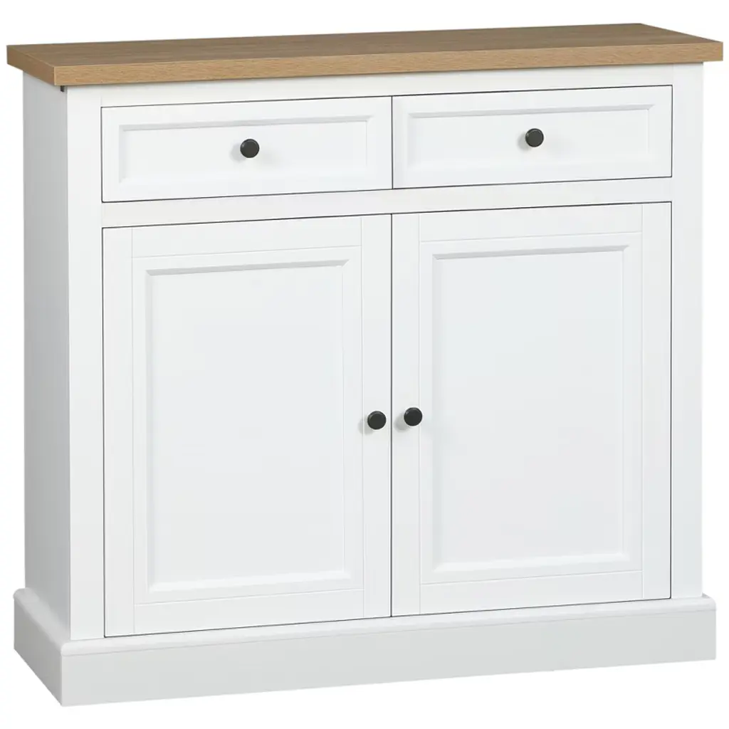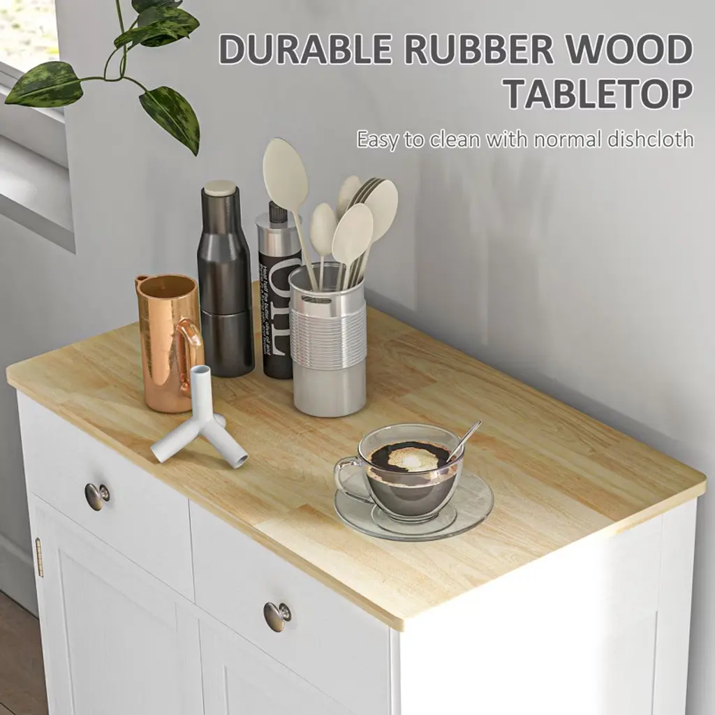 Homcom Sideboard With Solid Wood Countertop, Modern Kitchen Storage Cabinet, Coffee Bar Cabinet With 2 Drawers, Doors And Adjustable Shelf