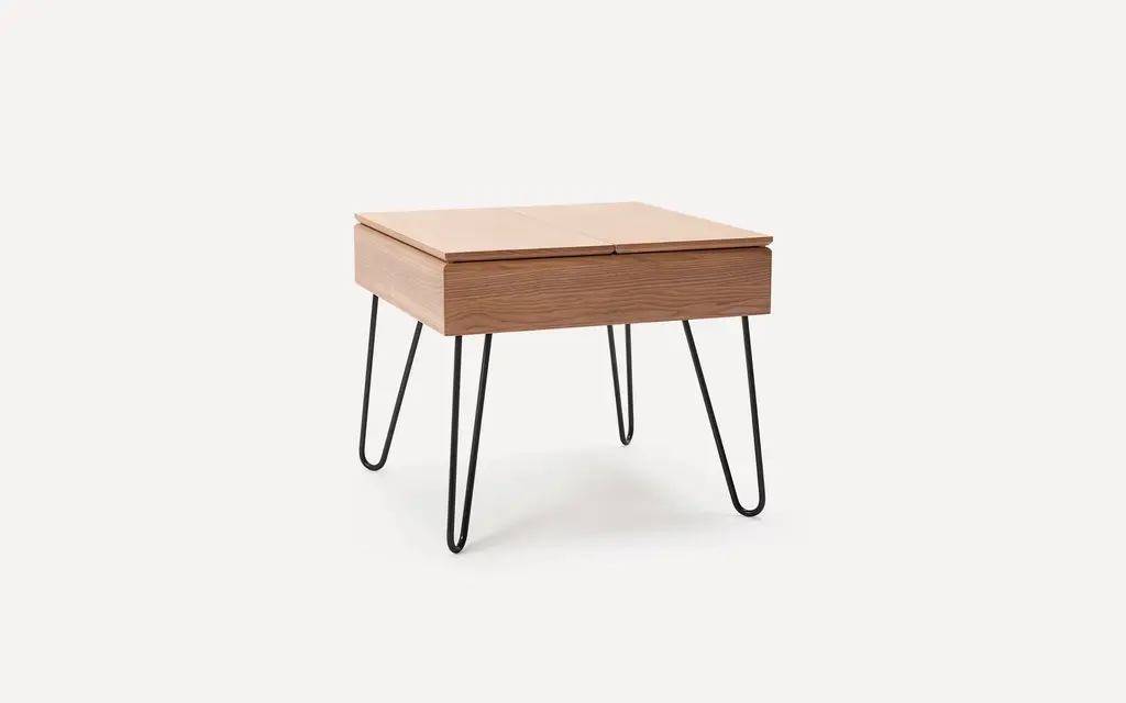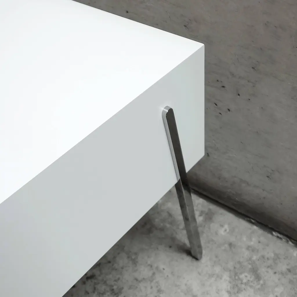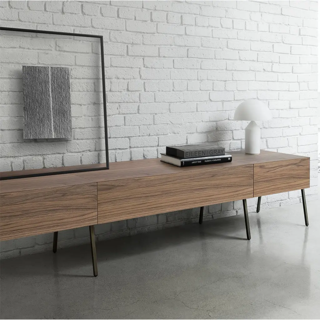 Elevated on slender metal legs, the geometric Into drawer cabinet floats serenely above the floor surface. Canadian-based Bensen’s superb made-in-Italy craftsmanship shines as the top woodgrain wraps around the sides for a continuous visual effect. Available in a variety of curated finishes, the cabinet comes in a choice of sizes—to use by the bed, as a side table or to combine as a larger storage setup.
