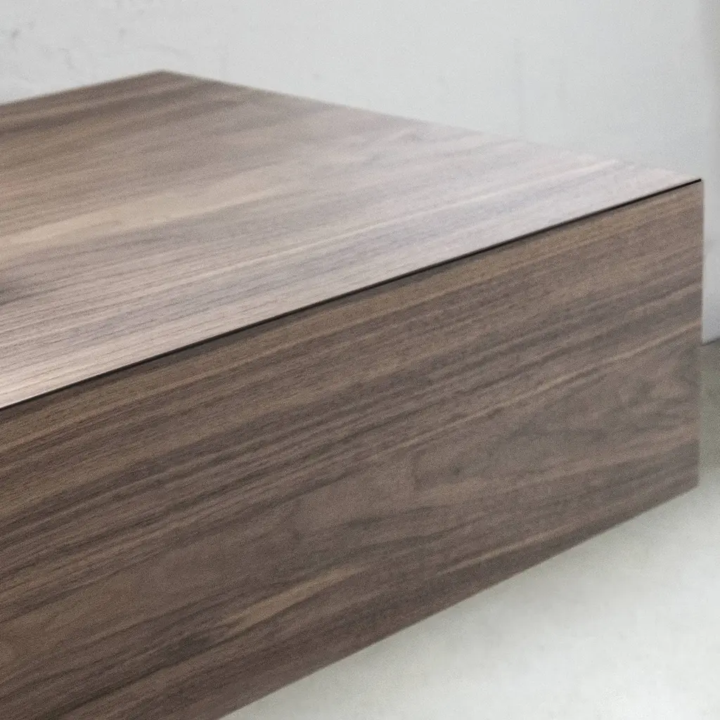 Elevated on slender metal legs, the geometric Into drawer cabinet floats serenely above the floor surface. Canadian-based Bensen’s superb made-in-Italy craftsmanship shines as the top woodgrain wraps around the sides for a continuous visual effect. Available in a variety of curated finishes, the cabinet comes in a choice of sizes—to use by the bed, as a side table or to combine as a larger storage setup.