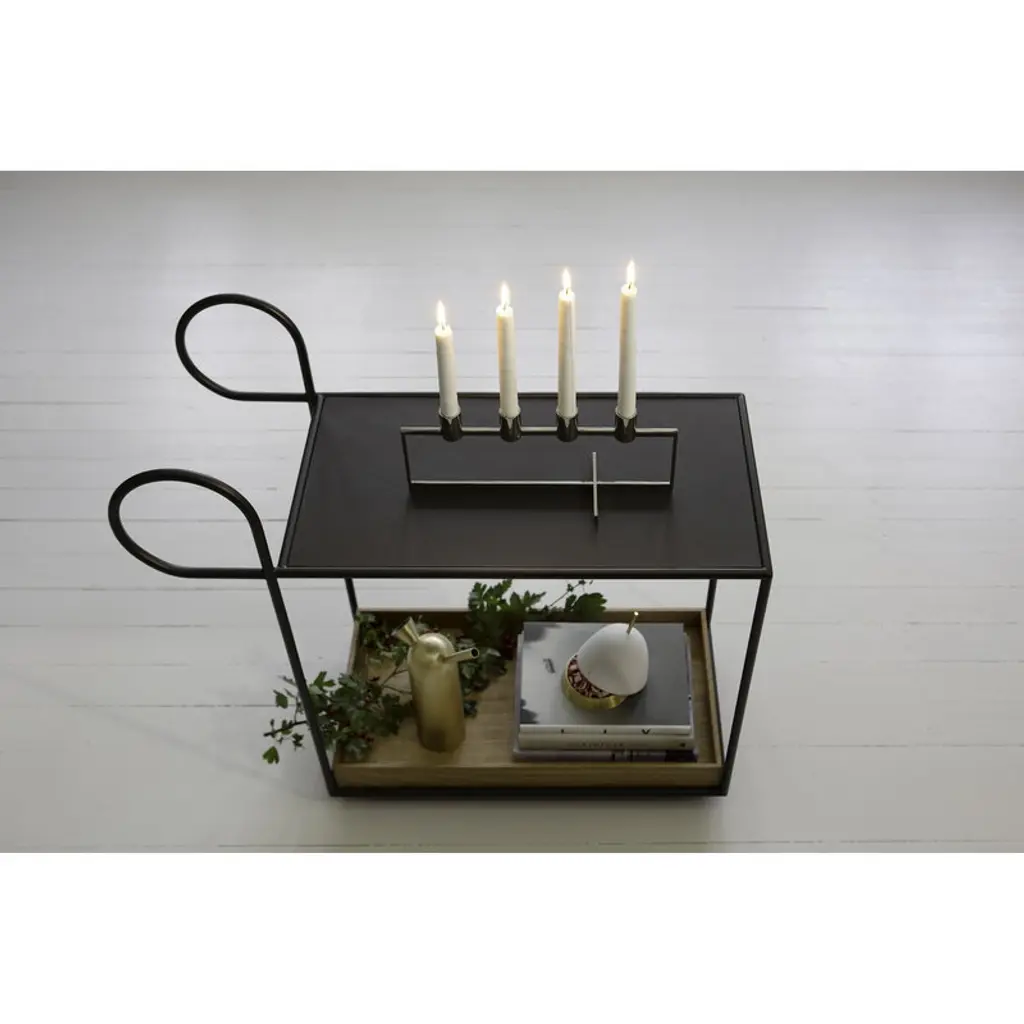 Julius trolley’s minimalist, appearance makes it an ideal side table, tea trolley or storage unit for both home and office use. The loop-shaped handles add character to the simple structure along with the removable wooden lower shelf that can be used as a tray. The Julius trolley is designed by the Swedish design duo Broberg & Ridderstråle.