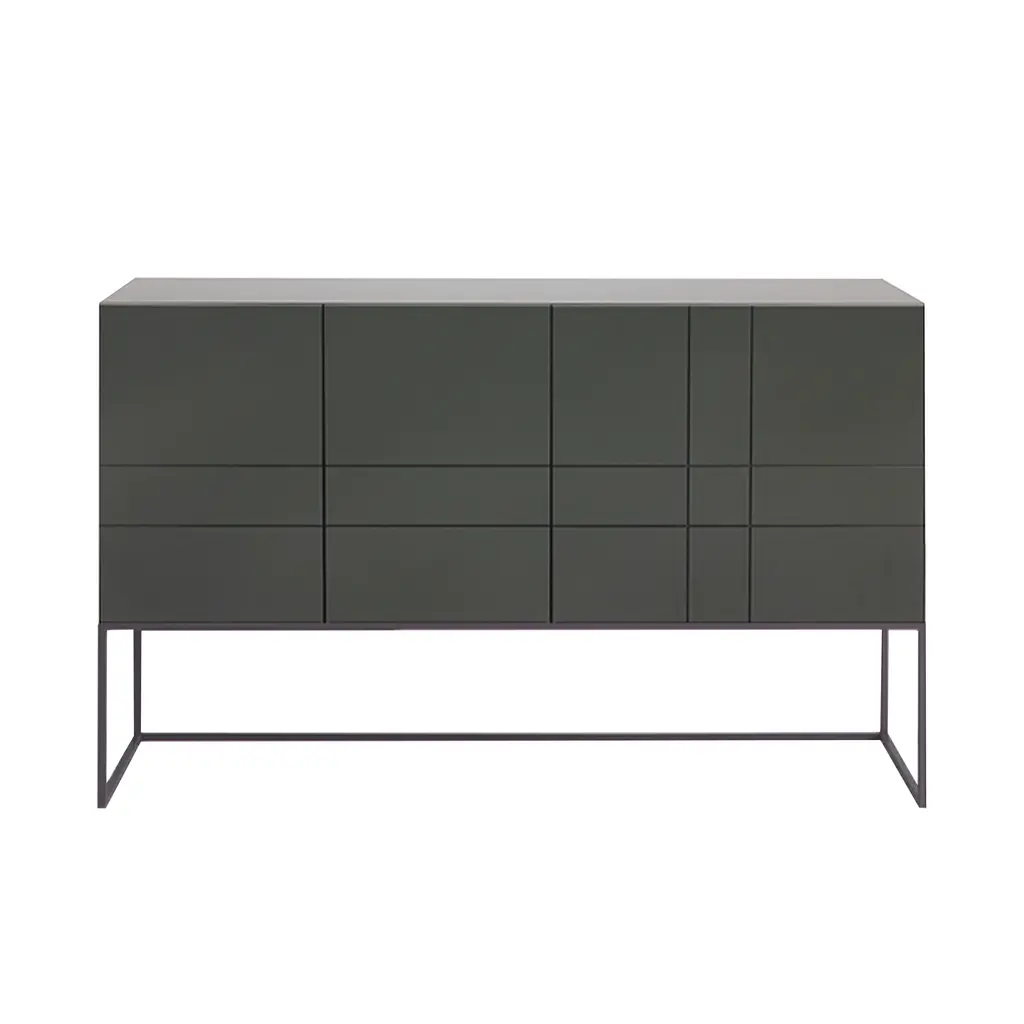Asplund offers a well-considered variation of its Kilt Light 137 storage unit with 2 doors to the left and 2 drawers to the right, all with the series’ front pattern inspired by a tartan. Its Stockholm-based architect-designers Claesson Koivisto Rune align the cabinet’s rectangular geometric patterning with the “golden ratio” that ancient Greeks believed to be the most aesthetically pleasing proportion. Crafted in Sweden of lacquered MDF in a selection of subdued Nordic tones, it has an opening at the back for ventilation or cables and the powder-coated metal stand can be ordered to match or in a contrasting hue.