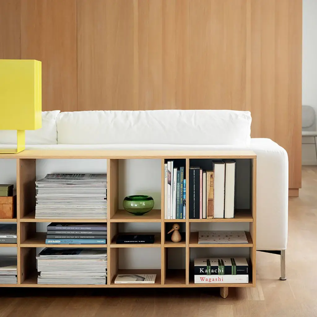 Claesson Koivisto Rune expands on their Kilt storage with an open-front design that echoes the series’ characteristic tartan theme. For a harmonious effect, the cabinet’s fixed shelves are arranged to follow the proportions of the “golden ratio” of classic architecture. Beautifully crafted in Sweden, Asplund’s cabinet and matching legs are made of stained oak and available in a choice of woodgrain finishes.