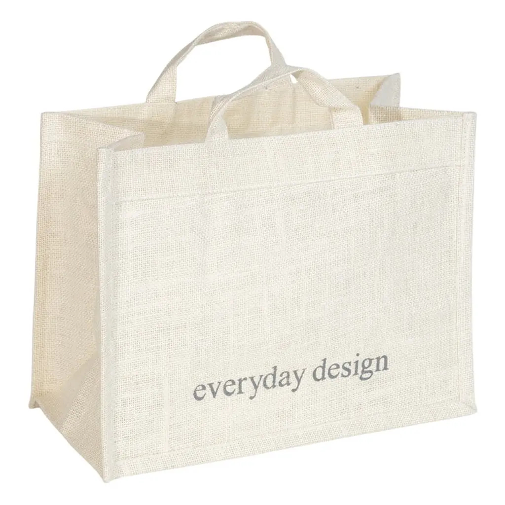 Everyday Design's Lahti jute bag complements the look and functionality of the Lahti holder. The sustainable bag is a handy helper for collecting bottles, cardboard and other recyclable items, but can also be used on its own as a shopping bag or a storage unit. The jute bag features a minimalist Everyday Design logo on the other side.