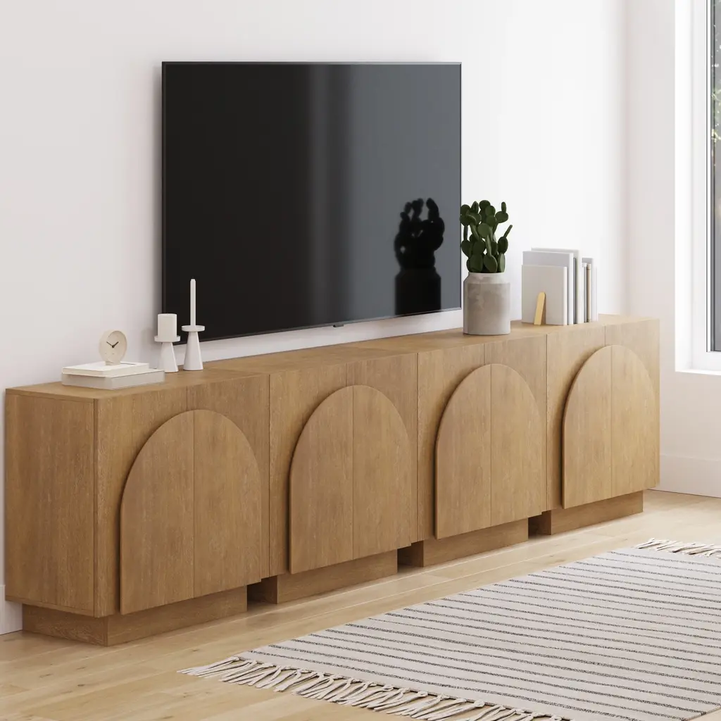 Large Arched Tv Console Credenza Light Brown (Set Of 4)