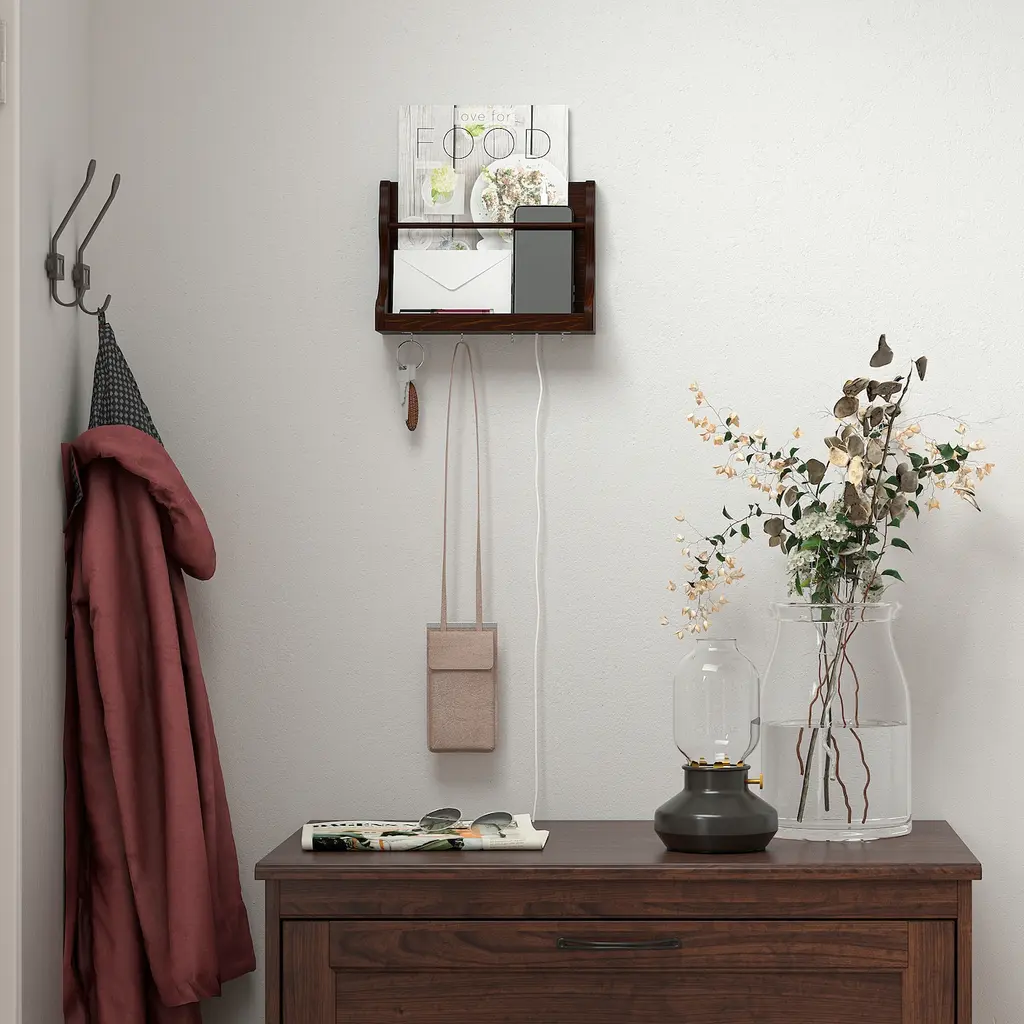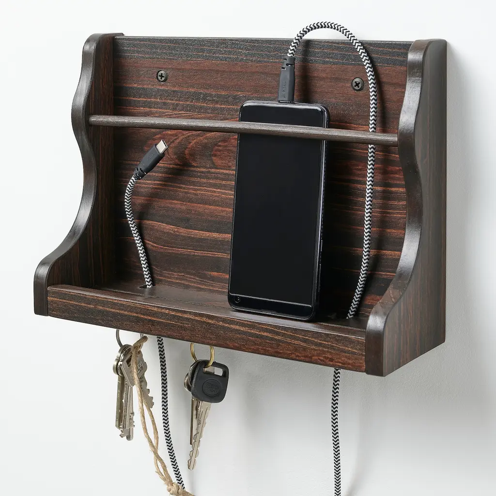 LEVLA Wall organizer - dark brown 10 ¾x3 ½x8 ¼ ". If you want to charge your mobile phone, you can easily pull the cable through one of the pre-drilled holes to connect it to a power outlet. Solid wood is a durable, natural material.