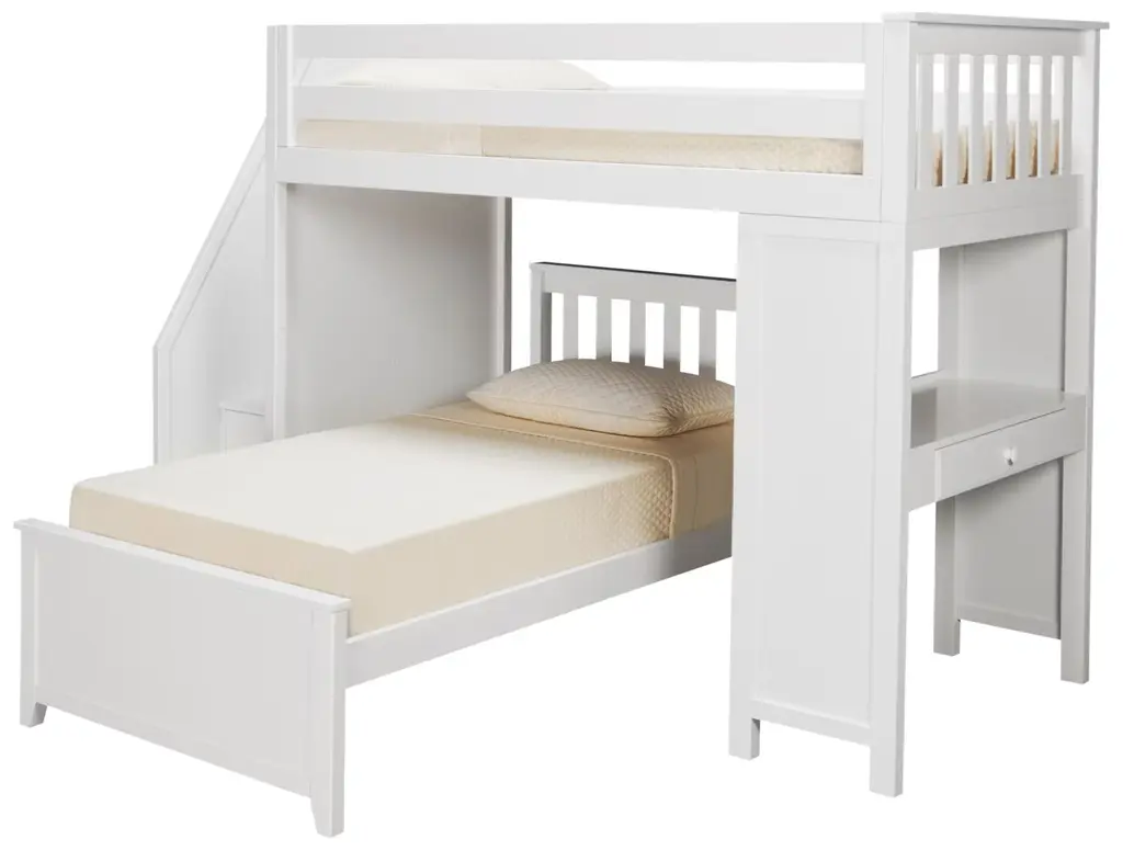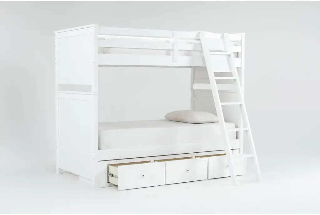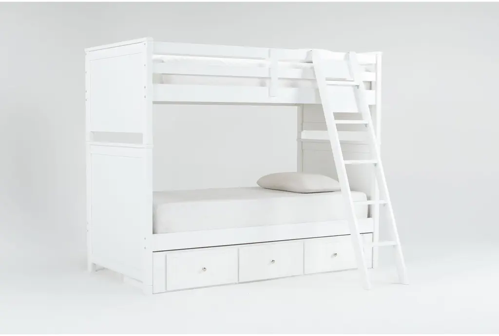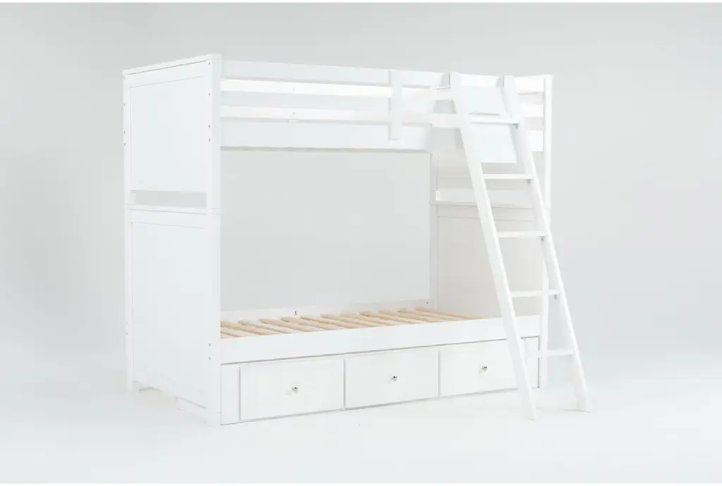 Luca White Twin Over Twin Wood Bunk Bed With Ladder & 3-Drawer Storage Unit