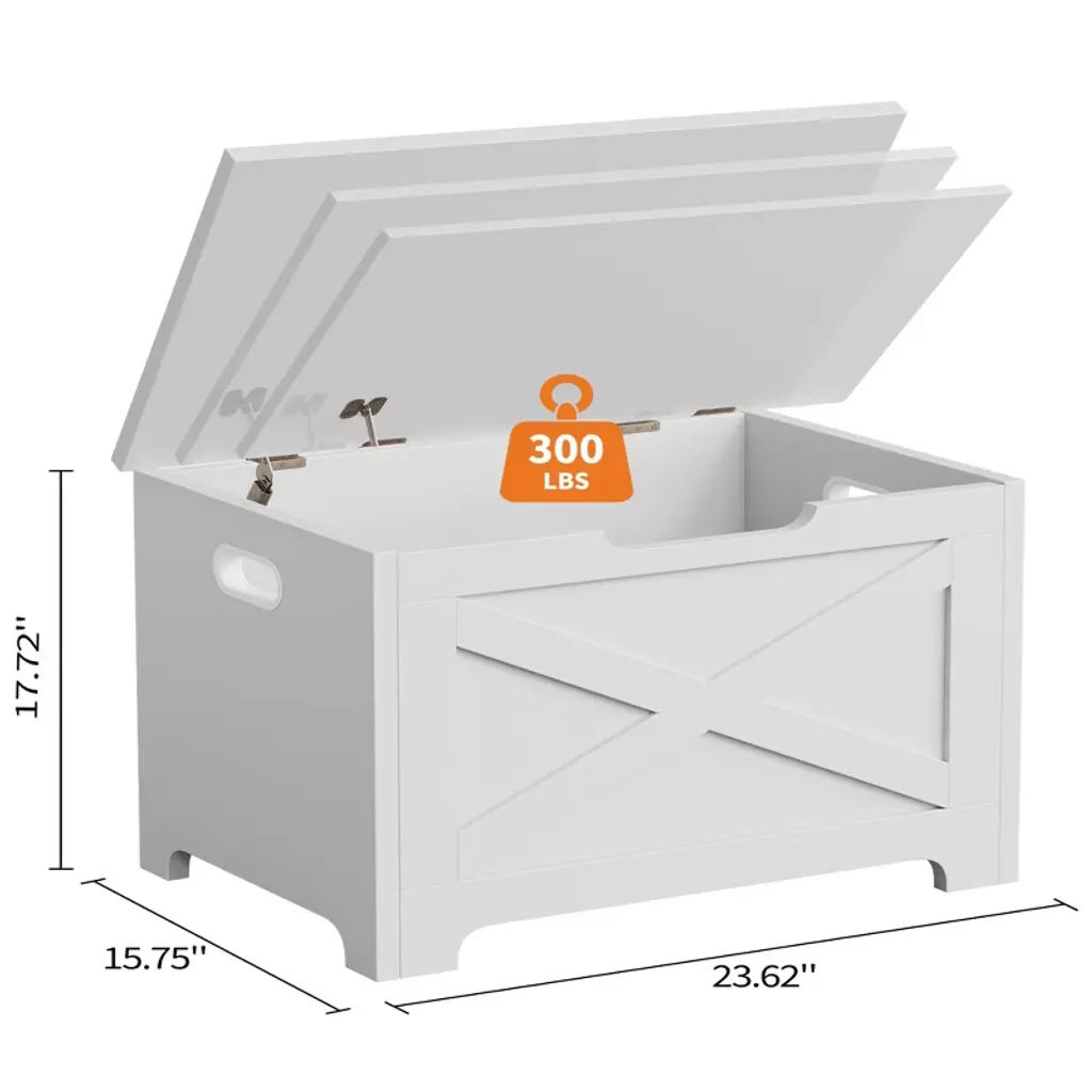 Mdf Storage Ottoman With Unique X-shaped Legs 23.6 Inch, Matte White Finish, Stylish And Functional