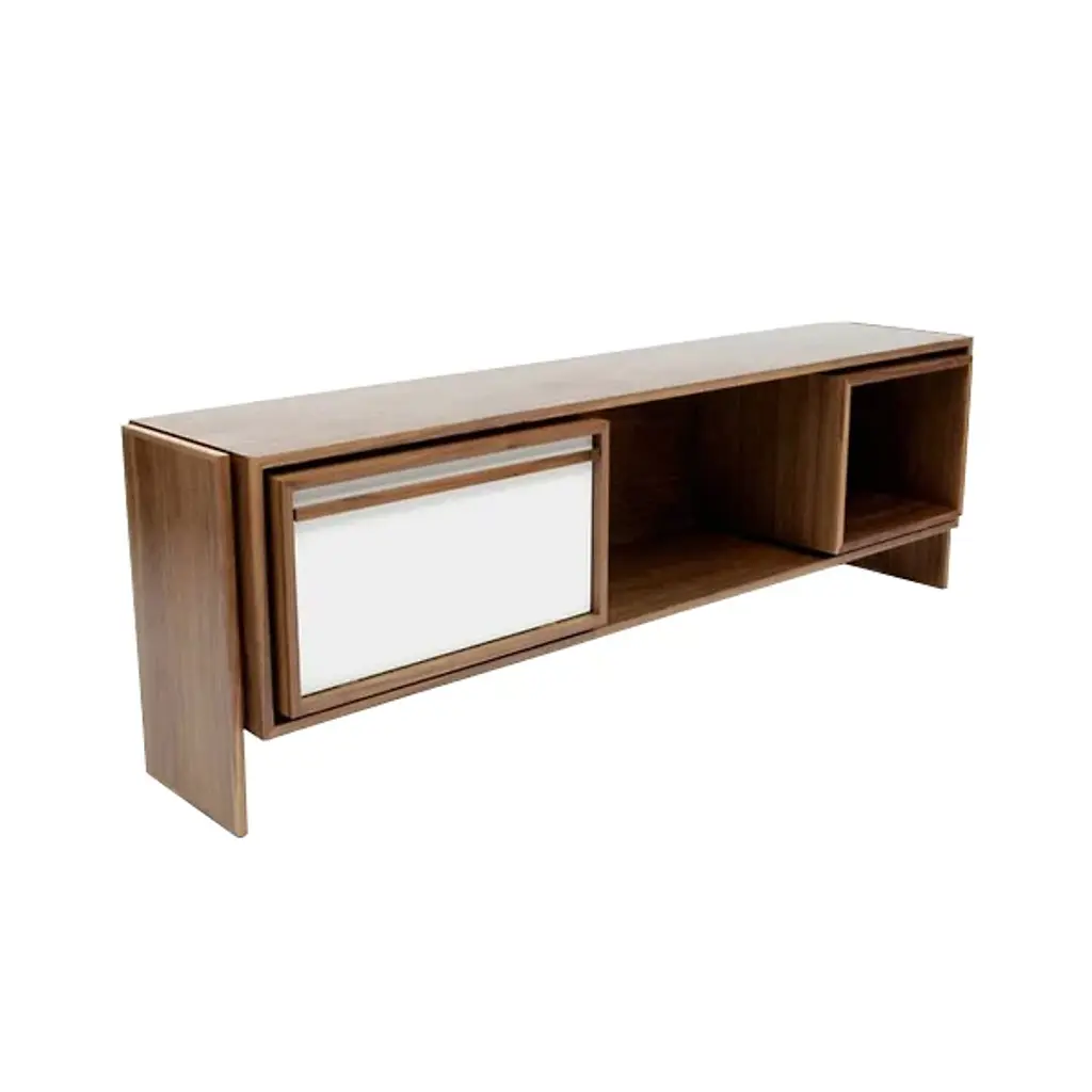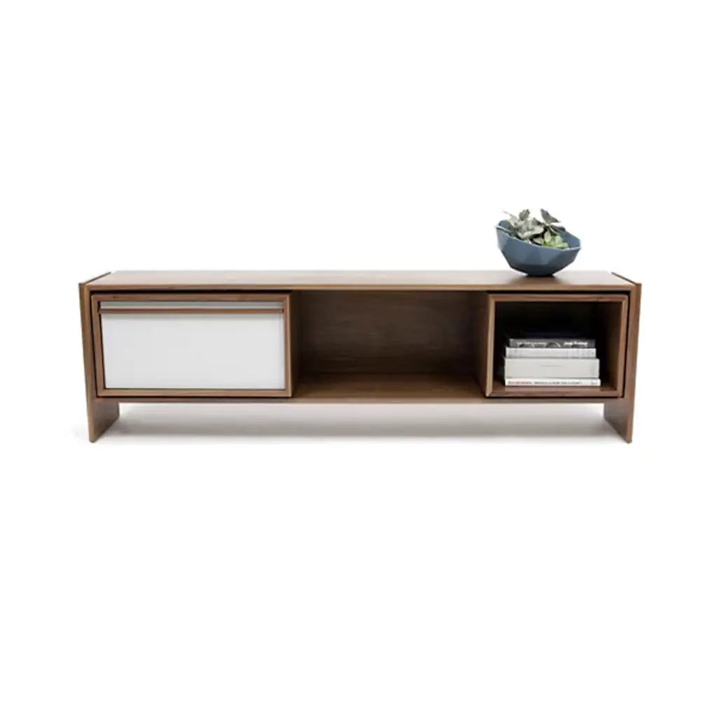 The Medium Low Unit by ARTLESS is a modern and efficient storage solution. This low storage unit allows you to organize and display items, while the door feature allows you to keep some items out of site. A media hole hidden behind the door makes Medium Low Unit a useful media stand. The frame and edges of the storage unit are crafted from walnut wood and the contrasting door is lacquered in your choice of color. ARTLESS strives to keep the wood used in out products in its most natural state, solid wood may exhibit slight variations in color and texture. Each piece is unique.