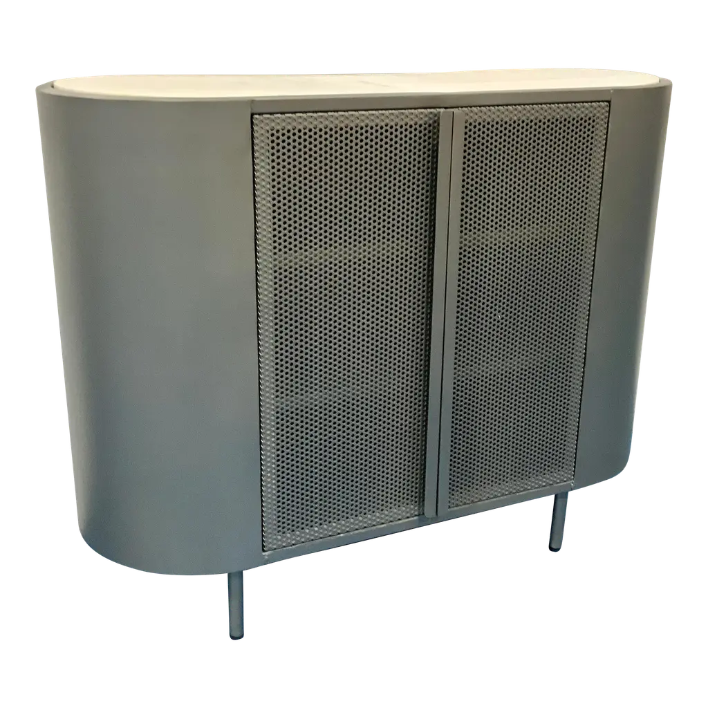 MERAVIGLIA by De Rosso is a storage unit made of HPL digital laminate finishing blu zaffiro, hinged door in perforated and painted metal, with 3 internal shelves in HPL decorative laminate. Feet in satin metal. Limited edition. «A curious family of cabinets. Pop in the look for friendly and known shapes. It is a limited edition for collectors who cannot forget having gone through the ‘80s. A delicate tribute to the most cheerful and optimistic chapter of the Italian design.» Paola NavoneLimited Edition is a project which was strongly desired by Roberto De Rosso. He fully drew some unpublished items, from the records of his company, adding many others created specifically for the occasion.An exciting collection, which varies between re-edited or reinterpreted classics and new designs, that has celebrated more than thirty years of creativity and visionary fantasy. The first series consists of seven pieces and some variations, which are certified in limited edition. It involves five creative people from the international scene - architects, designers and artists - who all have different backgrounds and individual paths different, but in perfect balance by nationality, generation and gender. They are united by the exuberant use of colour applied to the philosophy of De Rosso’s language, which varies between Pop-Art quotes, references to the Alchimia movement and the Memphis style.Amongst other things the family of furnishings covers the areas of the domestic environment, which are perfect in groups as well as individually, with an exhilarating presence. From Martine Bedin’s enigmatic totem bookcase to Richard Hutten’s sculptural seat in five kaleidoscopic variants, to the theme of sideboards and containers interpreted with irony by Paola Navone; from the table covered with allegorical pop graphics of Ugo Nespolo to the zoomorphic shapes of the new pieces by Adam Nathaniel Furman: the hedgehog low table and the monster-chair which is ready to bite whoever sits down. The Limited Editions by De Rosso are dedicated to collectors and design lovers. They constitute an important, out-of-the-ordinary collection, which is unconventional and exclusive, in a perfect union between inventiveness and originality.