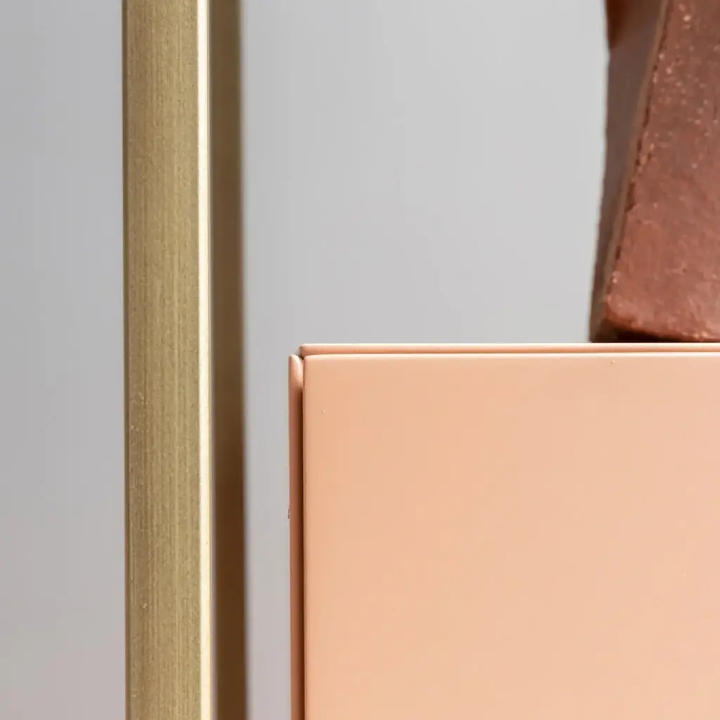 Introducing the Metal-Framed Contemporary Pillar Storage by Mogg Zoom. With its elegant and modern design, this storage unit features a sleek metal frame and linear geometric structure. Available in a range of colors and finishes, it seamlessly blends in with any space while providing ample storage. Upgrade your home with this luxurious and exclusive piece.