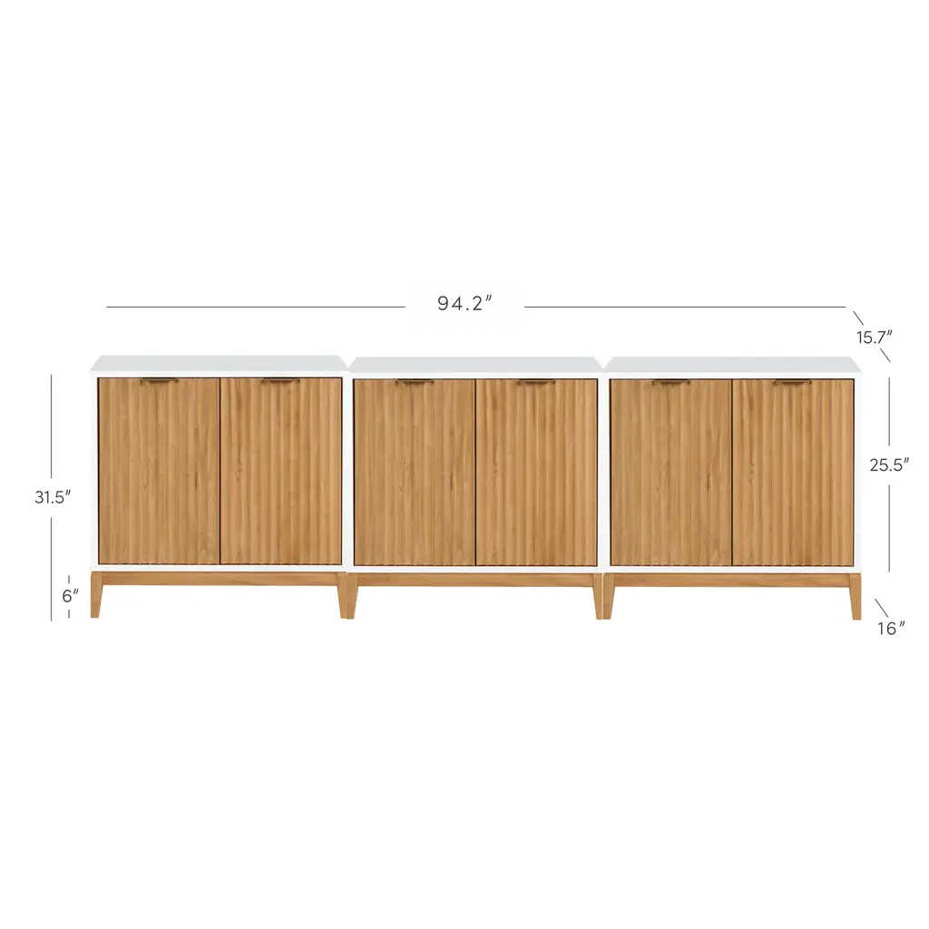 Mid-Century Fluted Tv Console Credenza White (Set Of 3)