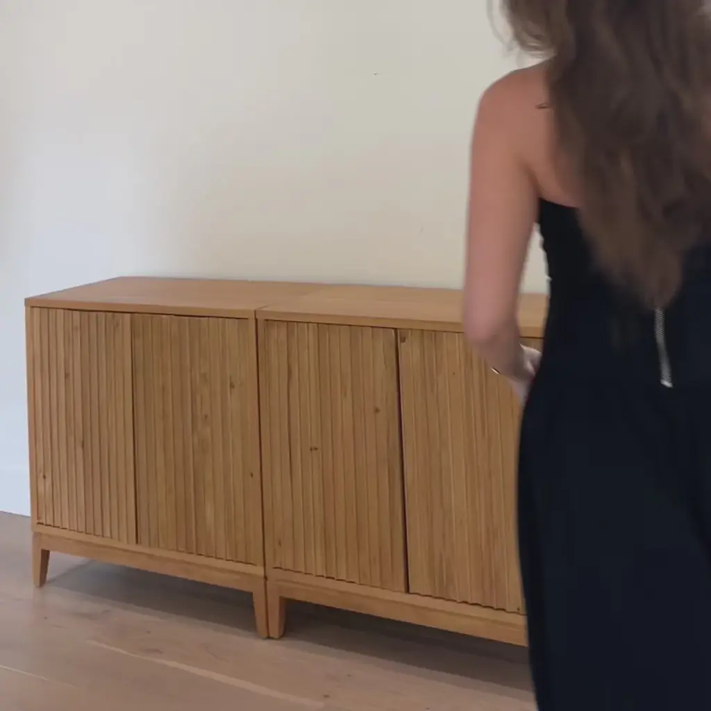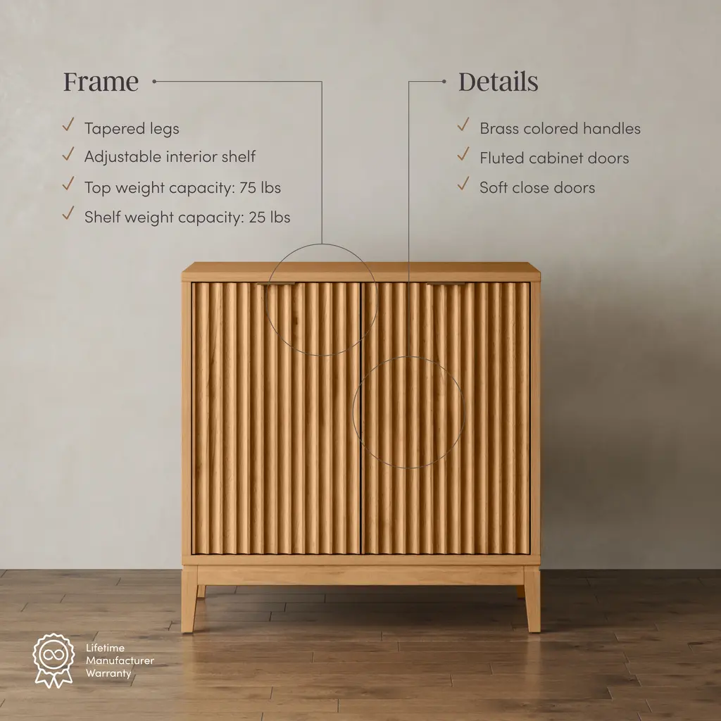 Mid-Century Wood Fluted Storage Cabinet Warm Pine