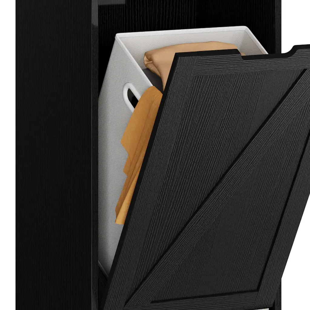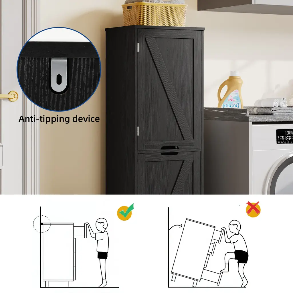 Moasis 53"h Tilt Out Laundry Hamper Bathroom Storage Cabinet With Adjustable Shelves And Basket - Black