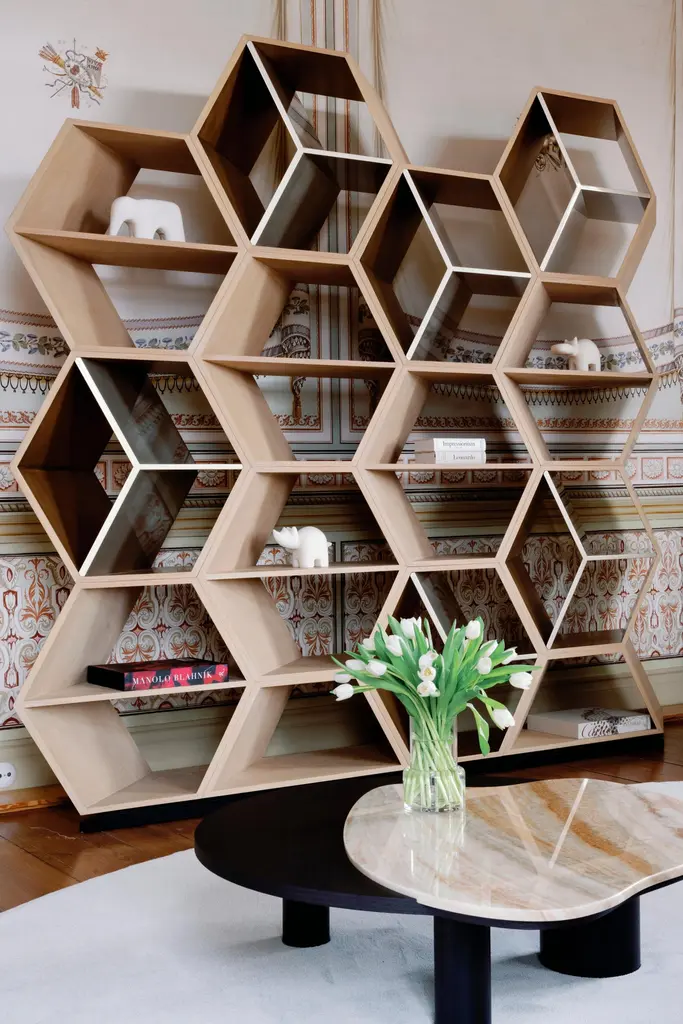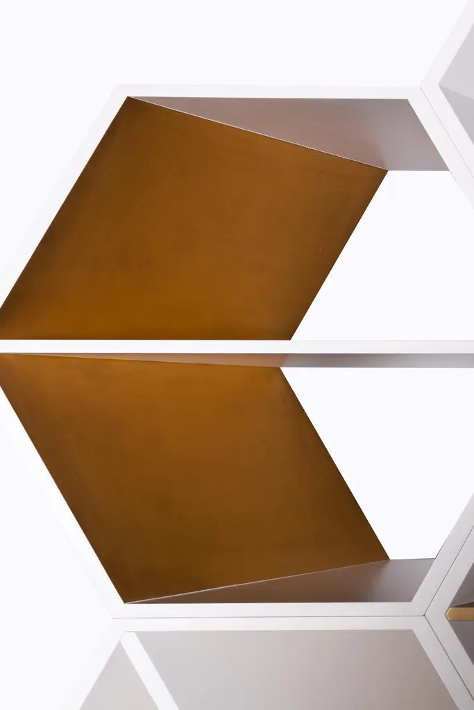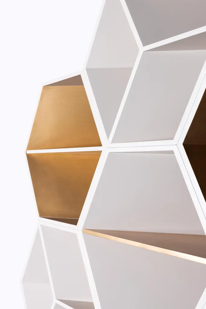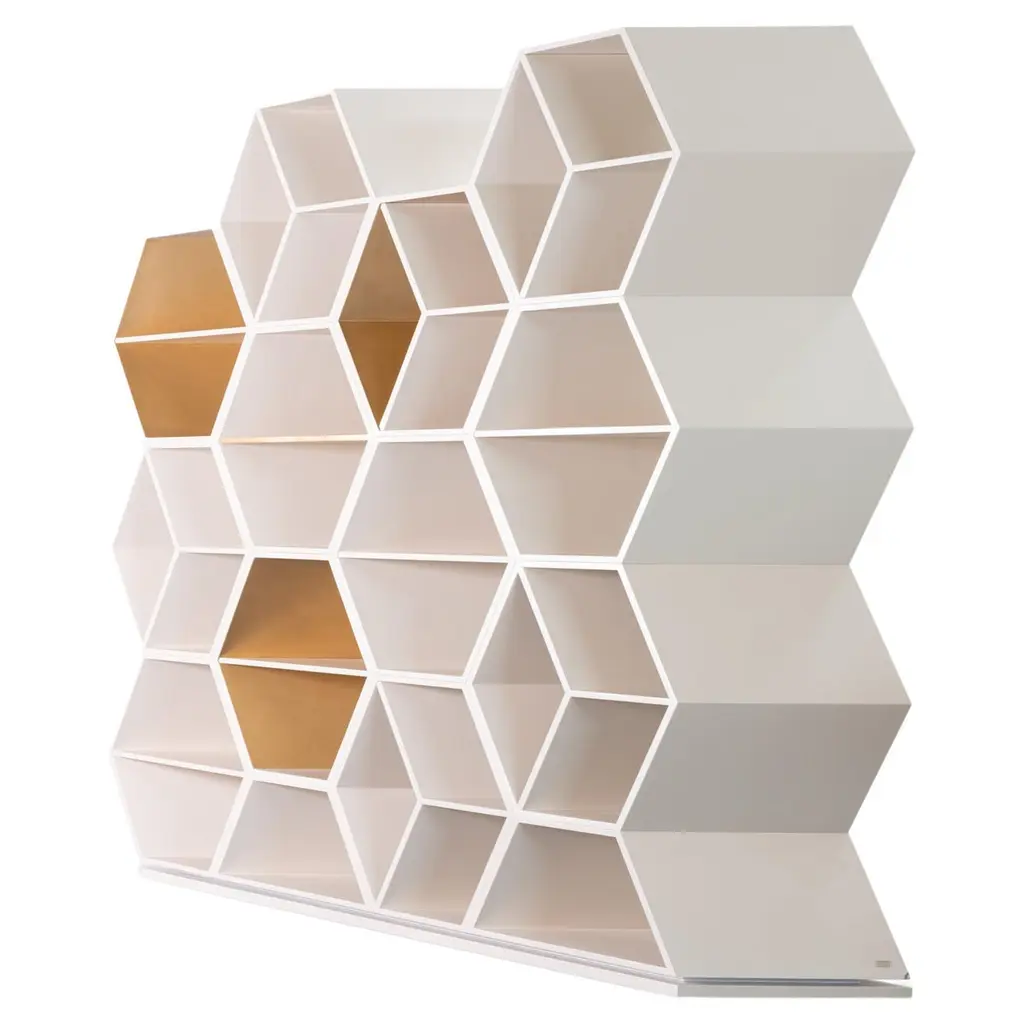 Hobart Bookcase, Contemporary Collection, Handcrafted in Portugal - Europe by Greenapple.The Hobart bookcase captures the natural ebb and flow of life through its ingenious geometric form. With a honeycomb-inspired design, this piece exudes novelty and unpredictability from every angle, offering a dynamic presence in any space. Designed to be a multipurpose work of art, the Hobart bookcase transforms contemporary offices and living room interiors by challenging the ordinary and sparking imagination.The Hobart bookcase features a three-dimensional hexagonal-patterned structure, lacquered in beige and patinated antique gold, both finished with a satin varnish. The base is backlit with indirect LED lighting.The Hobart bookcase can be customized in terms of dimensions, materials and finishes.Hobart Bookcase Material CodesFI022 Lacquered, Beige, SatinFI112 Lacquered, Patinated, Varnished, Antique Gold, SatinEL009 Indirect LED lightingHandcrafted in Portugal - Europe by GreenappleUnique by design, Crafted by peopleGreenapple transforms contemporary spaces into exclusive narratives of design and craftsmanship. From custom-made furniture to bespoke interiors, each creation is a timeless work of art, shaped by master artisans who honor centuries-old techniques.Founded in 2005 by Sérgio Rebola and Rute Martins, Greenapple has earned global recognition among high-end clientele and leading design firms. While Rute designs each unique piece, Sérgio ensures uncompromising quality from design to production and from production to your home. We provide a seamless experience, offering short production lead times, worldwide delivery within 7 to 10 days, and white-glove service upon request.For U.S. clients, we can handle all customs clearance, cover duties, and offer white-glove service as well upon request.Bookshelf, Display Shelves, Storage Unit