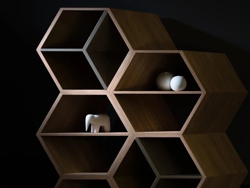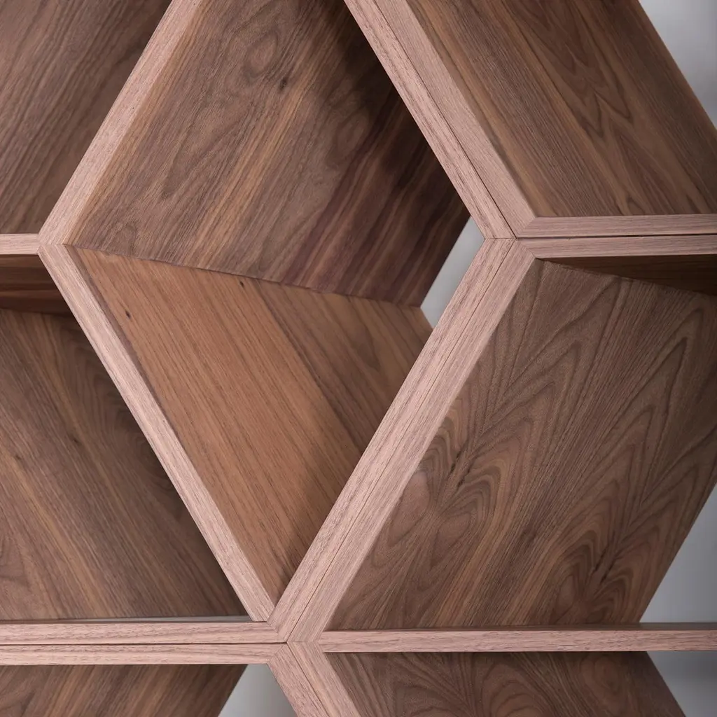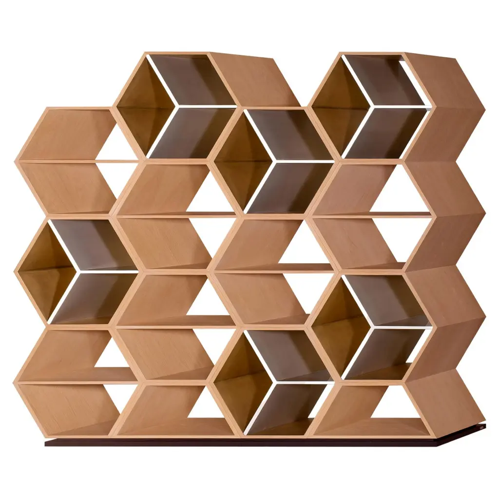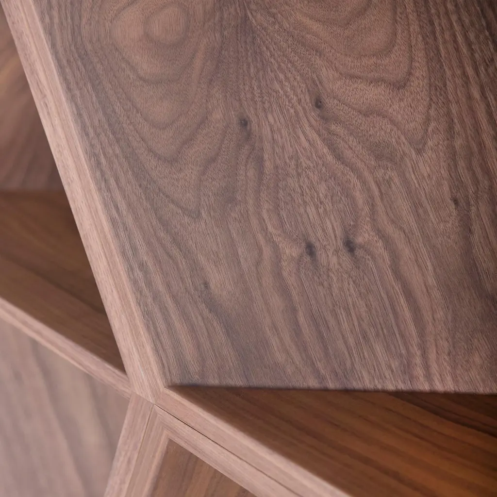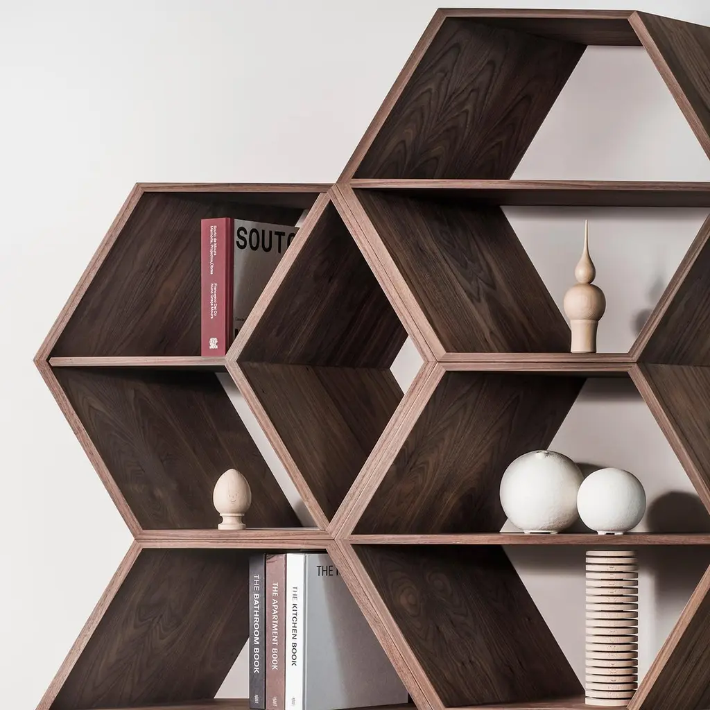 Hobart Bookcase, Contemporary Collection, Handcrafted in Portugal - Europe by Greenapple.The Hobart bookcase captures the natural ebb and flow of life through its ingenious geometric form. With a honeycomb-inspired design, this piece exudes novelty and unpredictability from every angle, offering a dynamic presence in any space. Designed to be a multipurpose work of art, the Hobart bookcase transforms contemporary offices and living room interiors by challenging the ordinary and sparking imagination.The Hobart bookcase features a three-dimensional hexagonal-patterned structure in natural brown walnut veneer, finished with a matte varnish. The base is lacquered in gold champagne with a high-gloss varnish.The veneer is anti-fungal and vermin-free, ensuring durability and preservation.The Hobart bookcase can be customized in terms of dimensions, materials and finishes.Hobart Bookcase Material CodesFI073 Lacquered, Varnished, Gold Champagne, High-GlossWD075 Walnut, Closed-pore, Varnished, Natural Brown Walnut, MatteHandcrafted in Portugal - Europe by GreenappleUnique by design, Crafted by peopleGreenapple transforms contemporary spaces into exclusive narratives of design and craftsmanship. From custom-made furniture to bespoke interiors, each creation is a timeless work of art, shaped by master artisans who honor centuries-old techniques.Founded in 2005 by Sérgio Rebola and Rute Martins, Greenapple has earned global recognition among high-end clientele and leading design firms. While Rute designs each unique piece, Sérgio ensures uncompromising quality from design to production and from production to your home. We provide a seamless experience, offering short production lead times, worldwide delivery within 7 to 10 days, and white-glove service upon request.For U.S. clients, we can handle all customs clearance, cover duties, and offer white-glove service as well upon request.Bookshelf, Display Shelves, Storage Unit