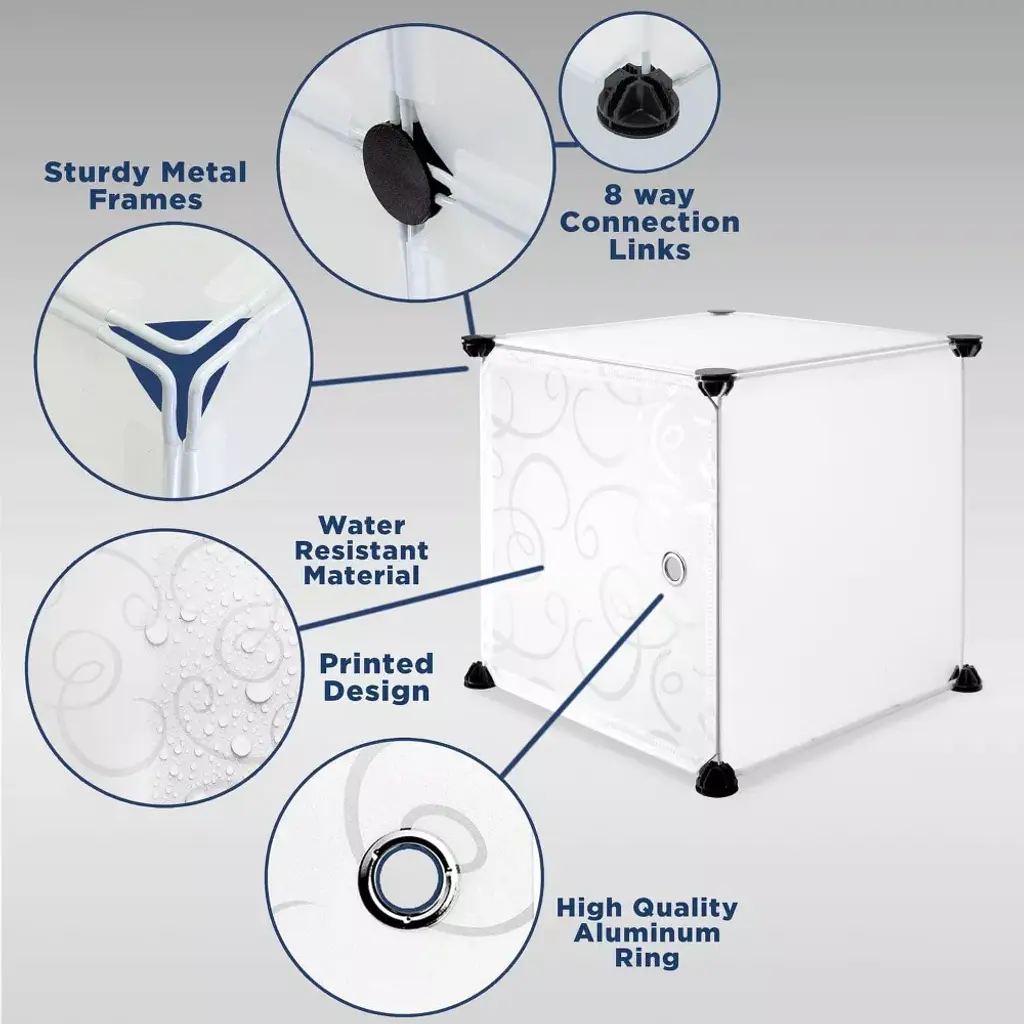 This storage cube organizer can be installed in a variety of ways in a wide range of spaces. The stacking modular cubes can be customized to fit your storage needs. Features doors to protect your items from dirt and dust, as well as to keep your items hidden from sight. Stay organized with these modular storage cubes.