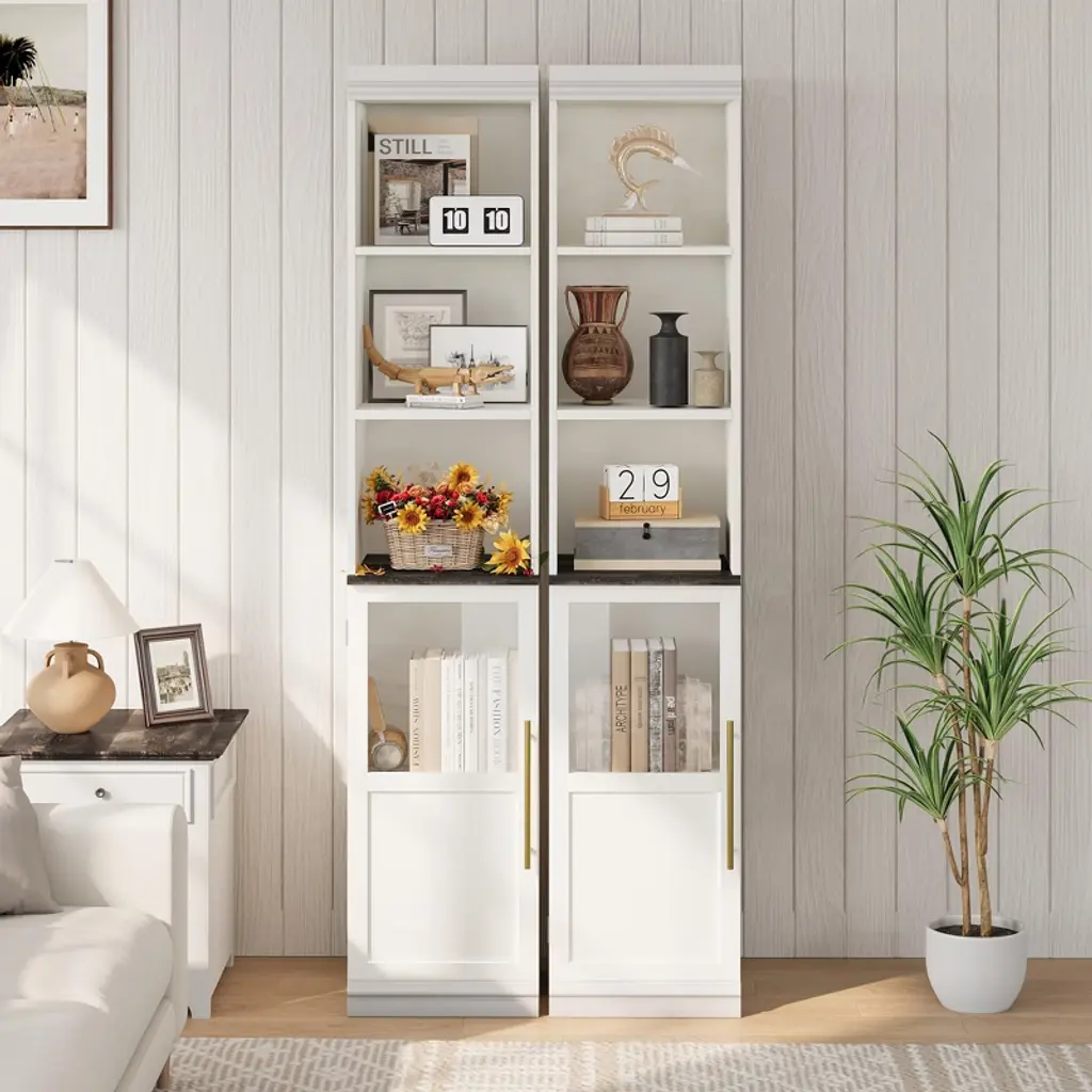 Narrow Bathroom Cabinet, 70 Inch Tall Storage Cabinet with Glass Door and 3 Open Shelves, Freestanding Slim Bathroom Storage Unit, Farmhouse Skinny Cupboard for Kitchen, Laundry