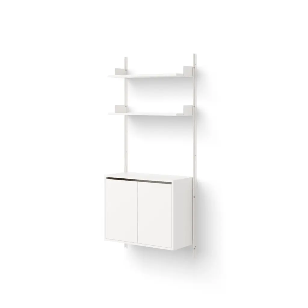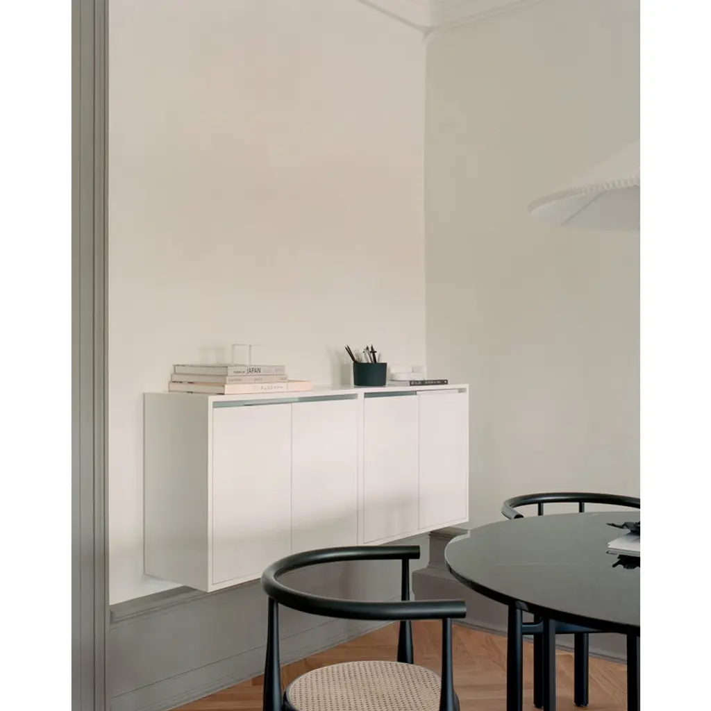 New Works’ cabinet with doors features two sturdy shelves that provide a neat, sheltered place to store everything from tableware and accessories to magazines, toys, textiles and office supplies. The minimalist wall-mounted cabinet’s top also serves as a handy side table, for example, for a lamp or houseplants. You can combine the cabinet with separately sold support brackets that ensure a smooth and sturdy wall installation. Designed by Knut Bendik Humlevik, the New Works storage collection includes easily combinable cabinets, chests of drawers and shelves in a variety of sizes and shapes. The pieces can be used individually as standalone storage units or assembled into a customized modular configuration to suit your needs – and expanded or modified whenever required. The minimalist designs also work perfectly as additions to an existing storage arrangement.