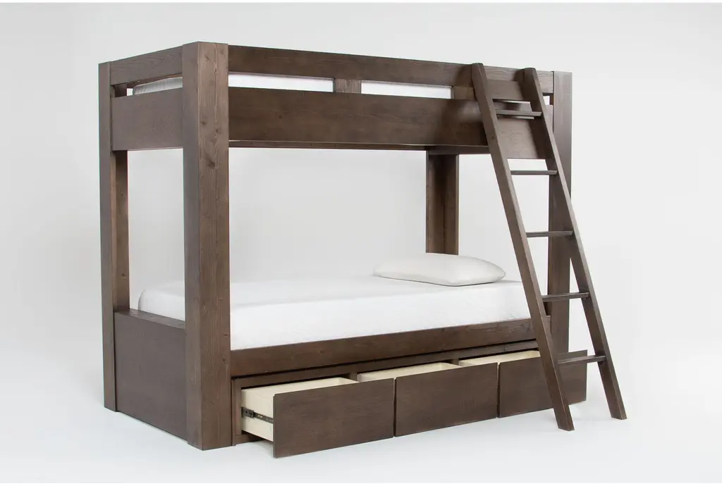 Nora Brown Wood Full Over Full Bunk Bed With Ladder & 3-Drawer Storage Unit