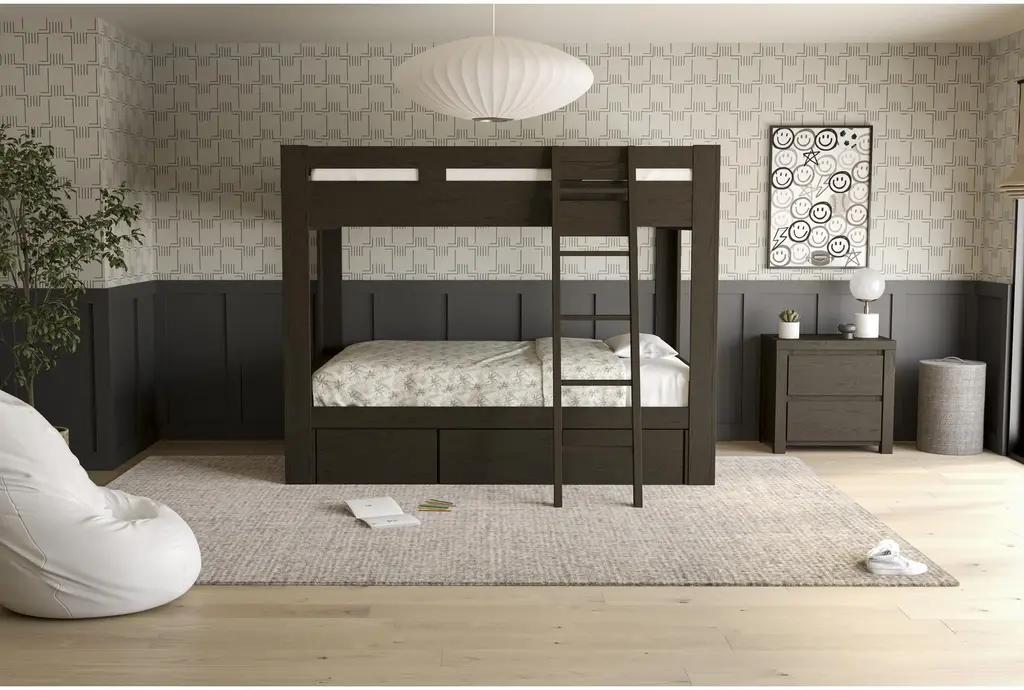 Designed to meet the needs of your family, our Nora bedroom collection invites you to create a space where your kids can relax, learn, play and grow. Each piece is constructed to ensure the utmost safety and durability with solid pine and cathedral oak veneers. Versatile, functional and streamlined, they boast features like drawers with dovetail joinery and full extension ball-bearing glides for smooth operation. With multiple finishes and items to choose from, you can get everything you need.