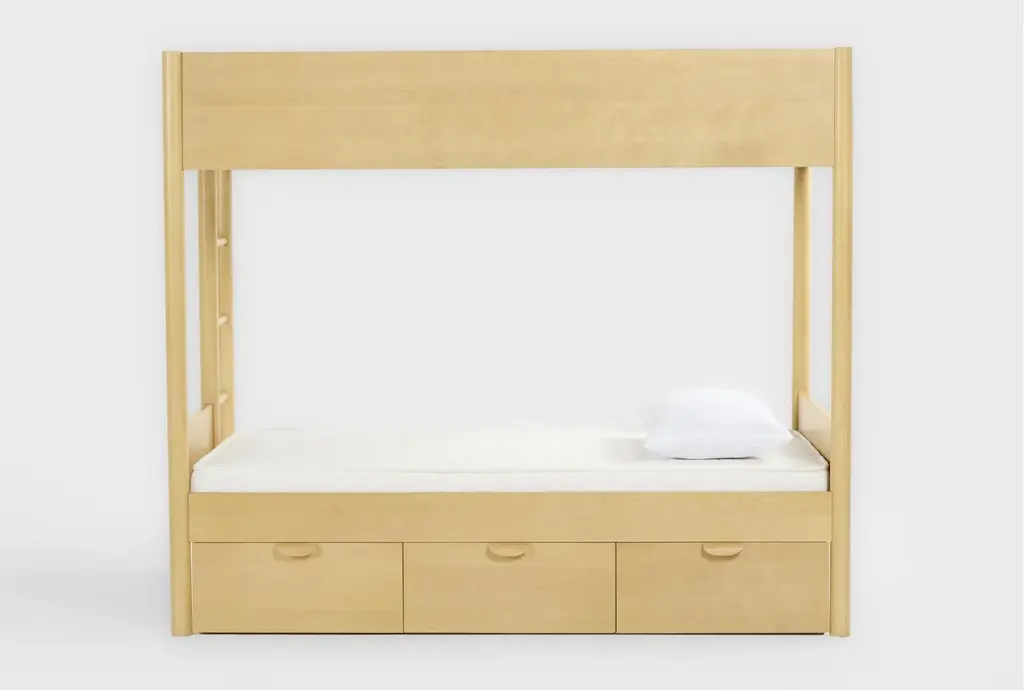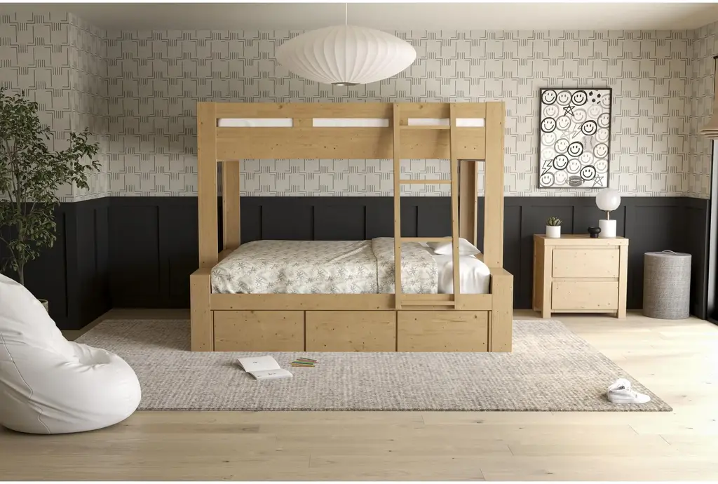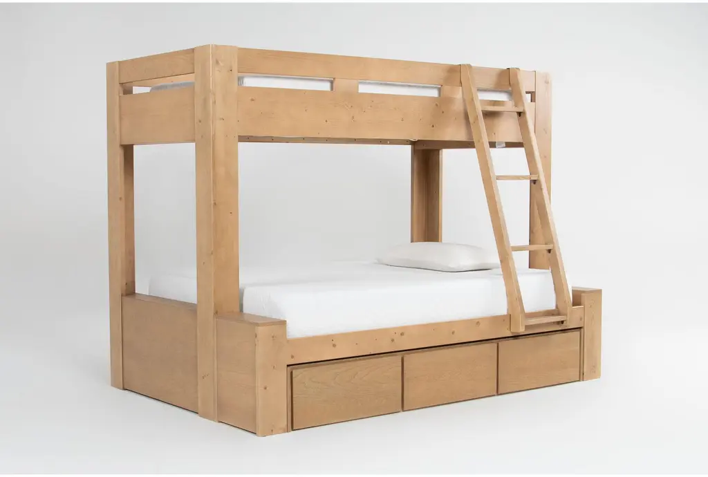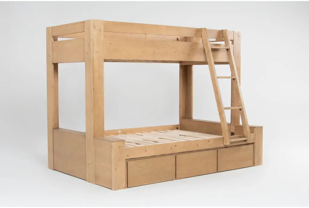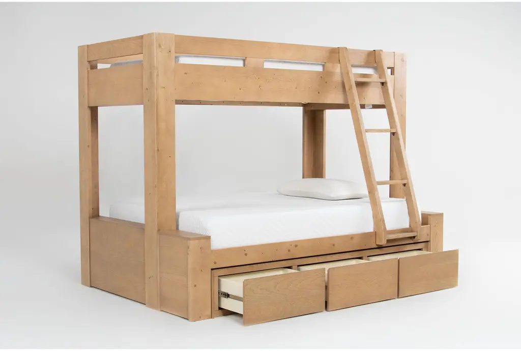 Nora Natural Wood Twin Over Full Bunk With Bed Ladder & 3-Drawer Storage Unit