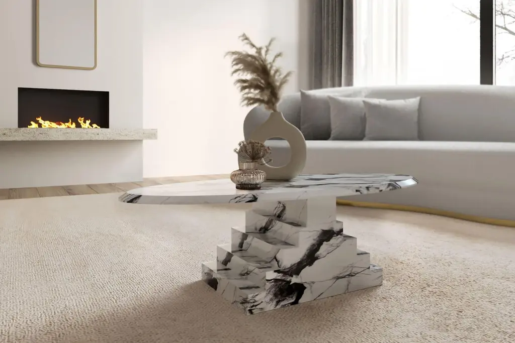 Nordst Niko Coffee Table, Italian White Mountain Marble, Danish Modern Design