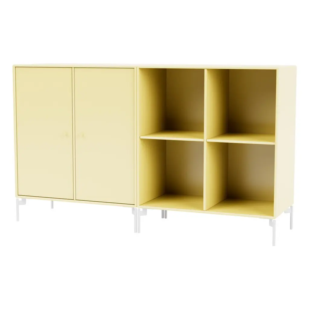 Montana Furniture’s Pair sideboard is a versatile storage unit that works equally well as a TV table, bookshelf or office furniture. Standing on thin metal legs, the sideboard consists of a cabinet and an open-shelf solution. The Pair sideboard is a part of Montana Selection, a collection of storage furniture and interior objects characterized by a graphic, simplistic form language and subtle, Nordic colors. The Montana products were created by Peter J. Lassen, and all the items have been designed and manufactured in Denmark.