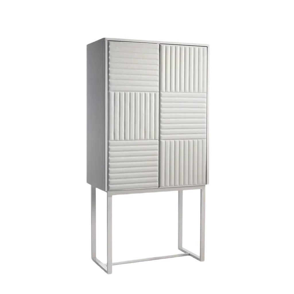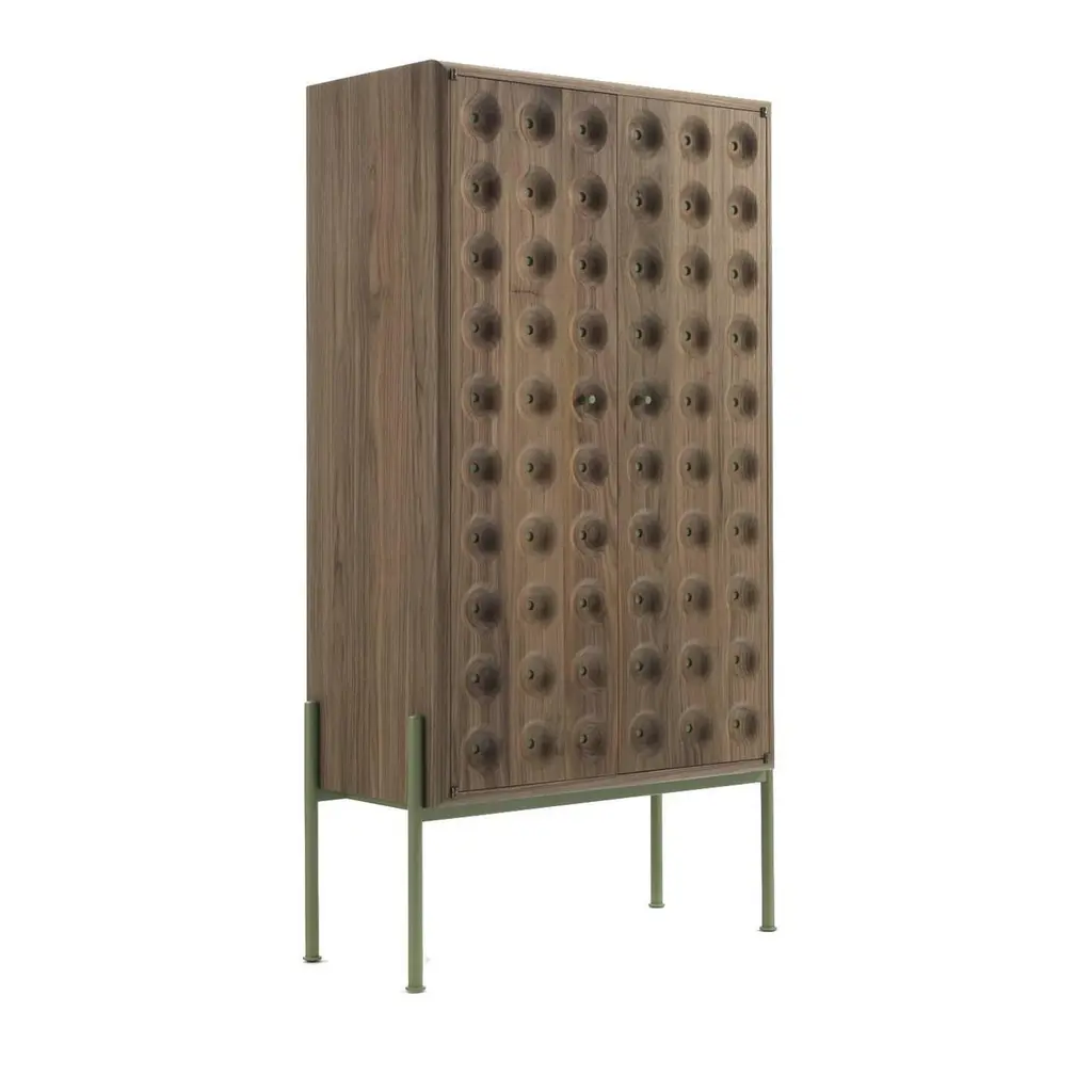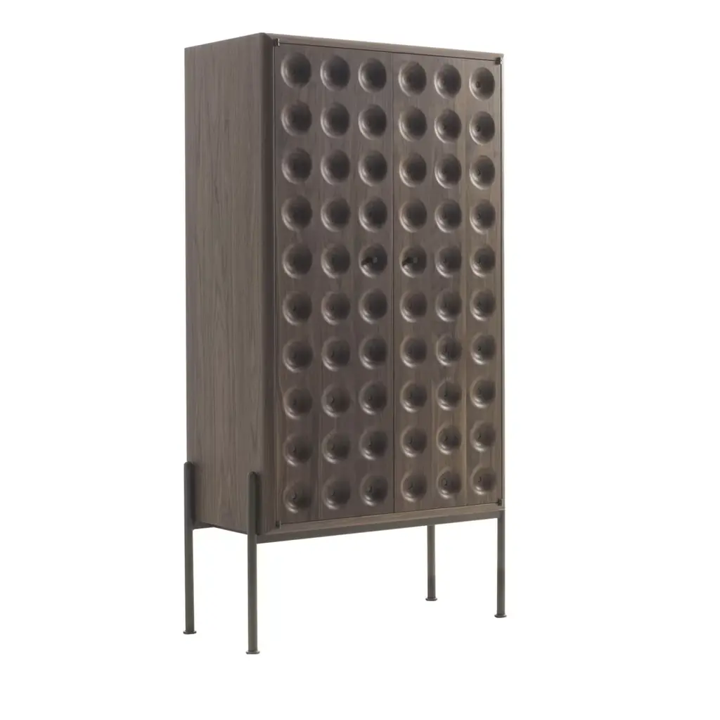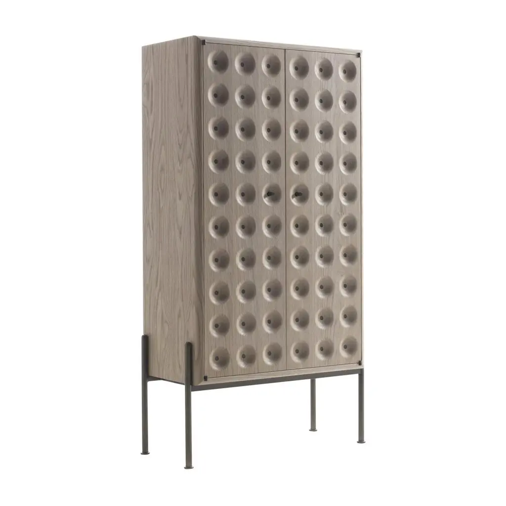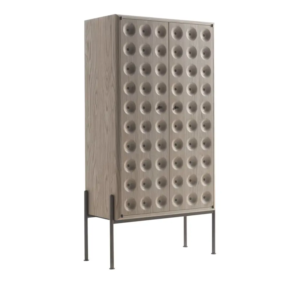 Perforated cabinet Floor is a cabinet with hinged doors in powder-coated steel.Defined by Muller Van Severen’s characteristic use of colour, form, and function, the Perforated Cabinet is a series of storage units that blend utility with bold aesthetics. The semi-transparent holes subtly conceal the contents while maintaining a sense of organisation. Available as wall-hanging and floor-standing variants, both featuring a magnetic door closure, they offer a practical and visually appealing solution for arranging and storing objects. Crafted in powder-coated steel, the cabinets come in different sizes and colours, providing a versatile storage solution for a wide range of domestic and public environments.