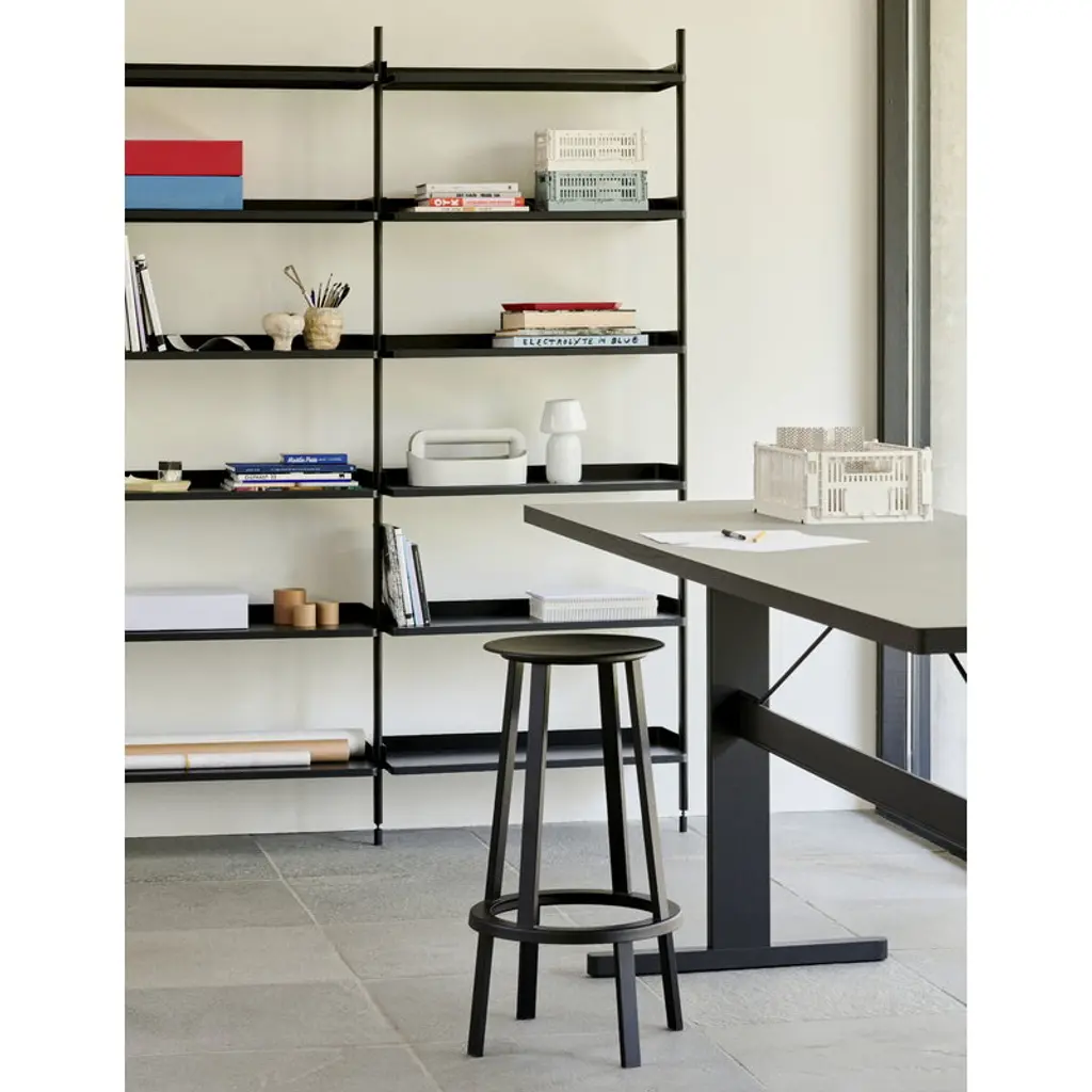 HAY's Pier System, designed by Ronan & Erwan Bouroullec, is a versatile storage solution that adapts seamlessly to the ever-changing needs of modern living. Pier System's simple structure can be easily adjusted to fit any space or requirement – whether you need to expand or downsize your storage, the modular shelf has got you covered! This two-part Pier System 102 storage combination consists of six levels, supported by black plastic brackets. The steel shelves can hold up to 33.07 lbs (15 kg) each and feature a charcoal finish with even a slightly darker back edge, adding a touch of contrast to the sleek, minimalist design. The lightweight yet durable aluminum frame ensures both functionality and timeless style.