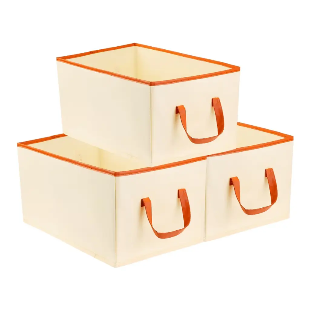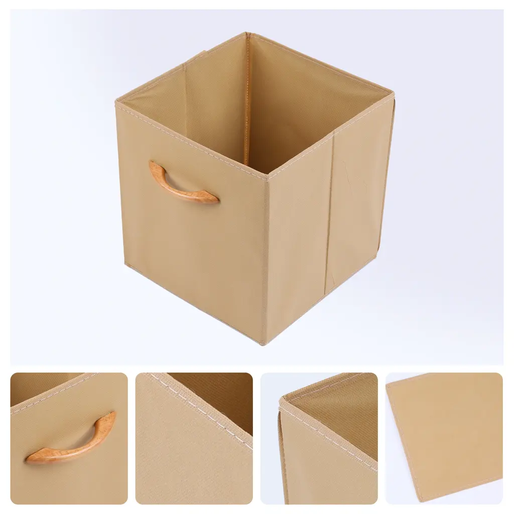 Racxily Set Of 6 Foldable Black Fabric Baskets, Beige
