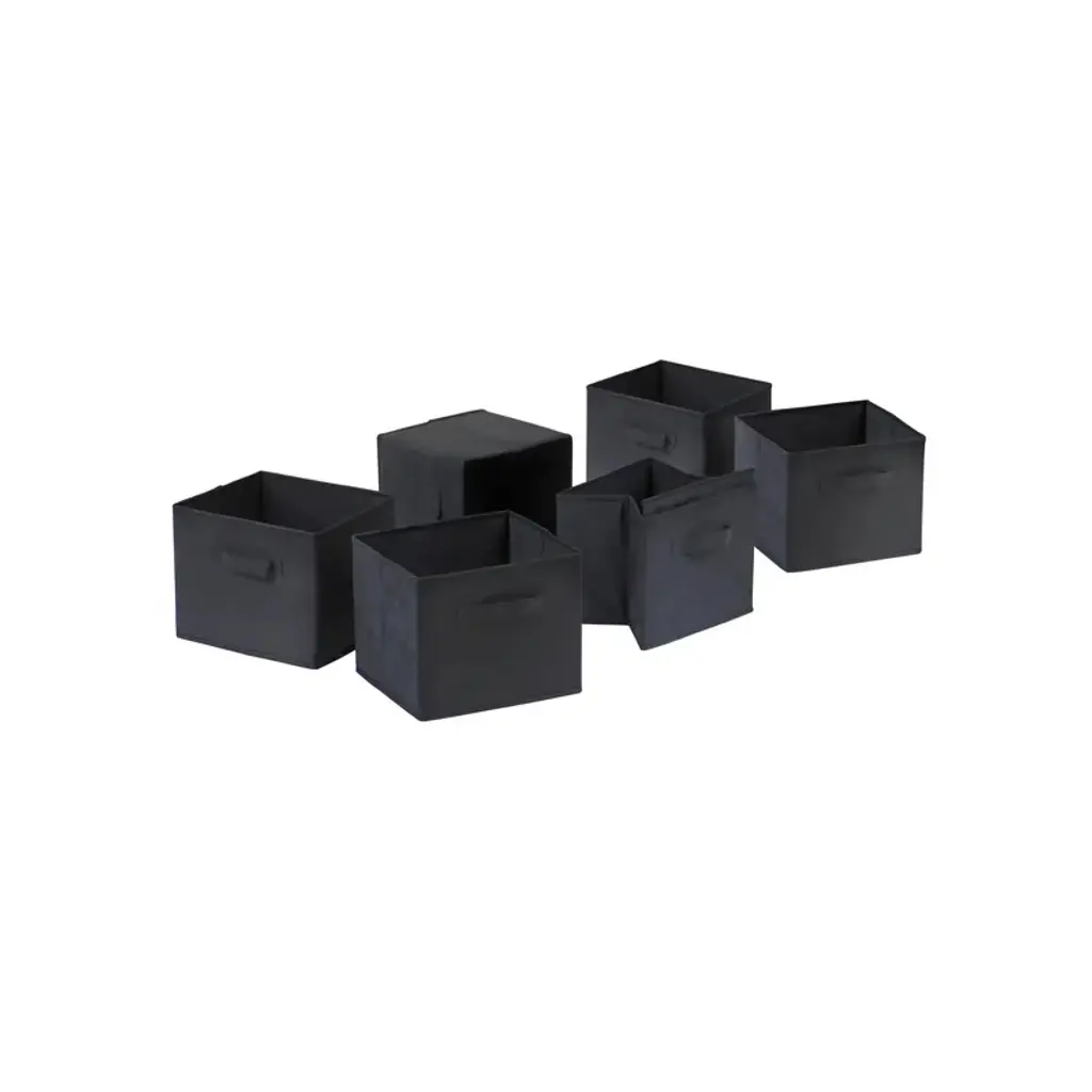 Set of 6 foldable black fabric baskets. Opened size is 10.9"W x 10"D x 9"H. Can be used as a magazine holder; file holder; or even art project holder. They are great for decorative storage and organization such as for washcloths in the bathroom; note pads at work; or personal items in chest of drawers. When not in use; they fold for easy storage. Easy to assembleSet of 6 foldable black fabric baskets.Open size 10.9"W x 10.06"D x 9"H.Perfect for individual use or pair them with shelf and turn it into a stunning storage unit.nullnullnull