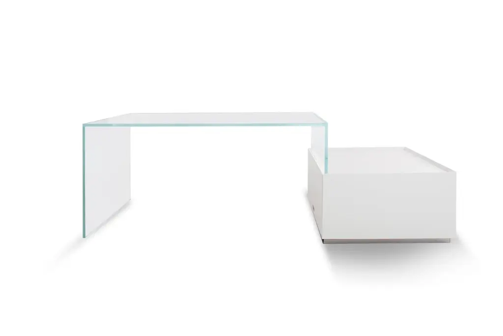 Sky Bridge is a glass desk with a pure multifunctional storage unit in white oak for the contemporary digital nomad – clean, light and functional. As shown wood: White milk oak glass: Clear glass.Handcrafted in Italy.