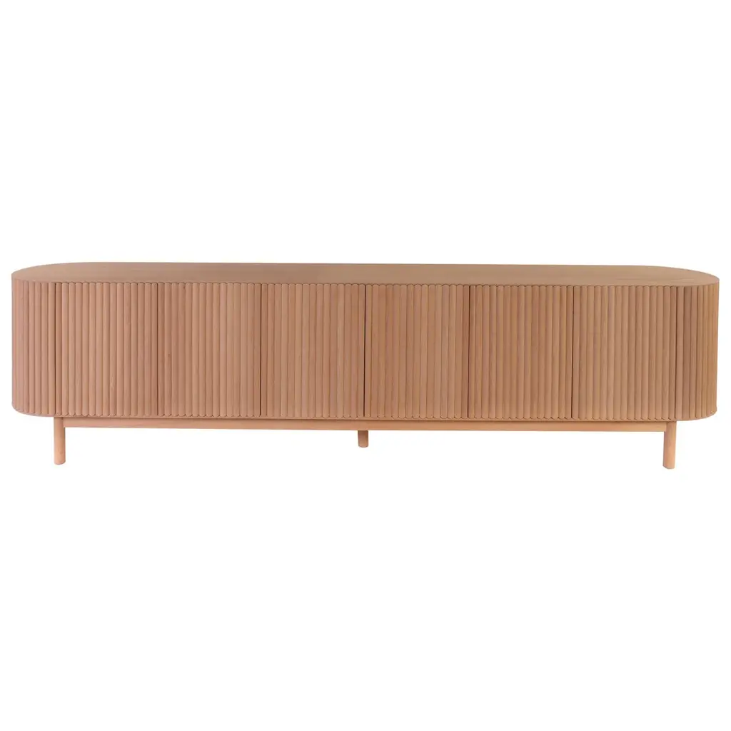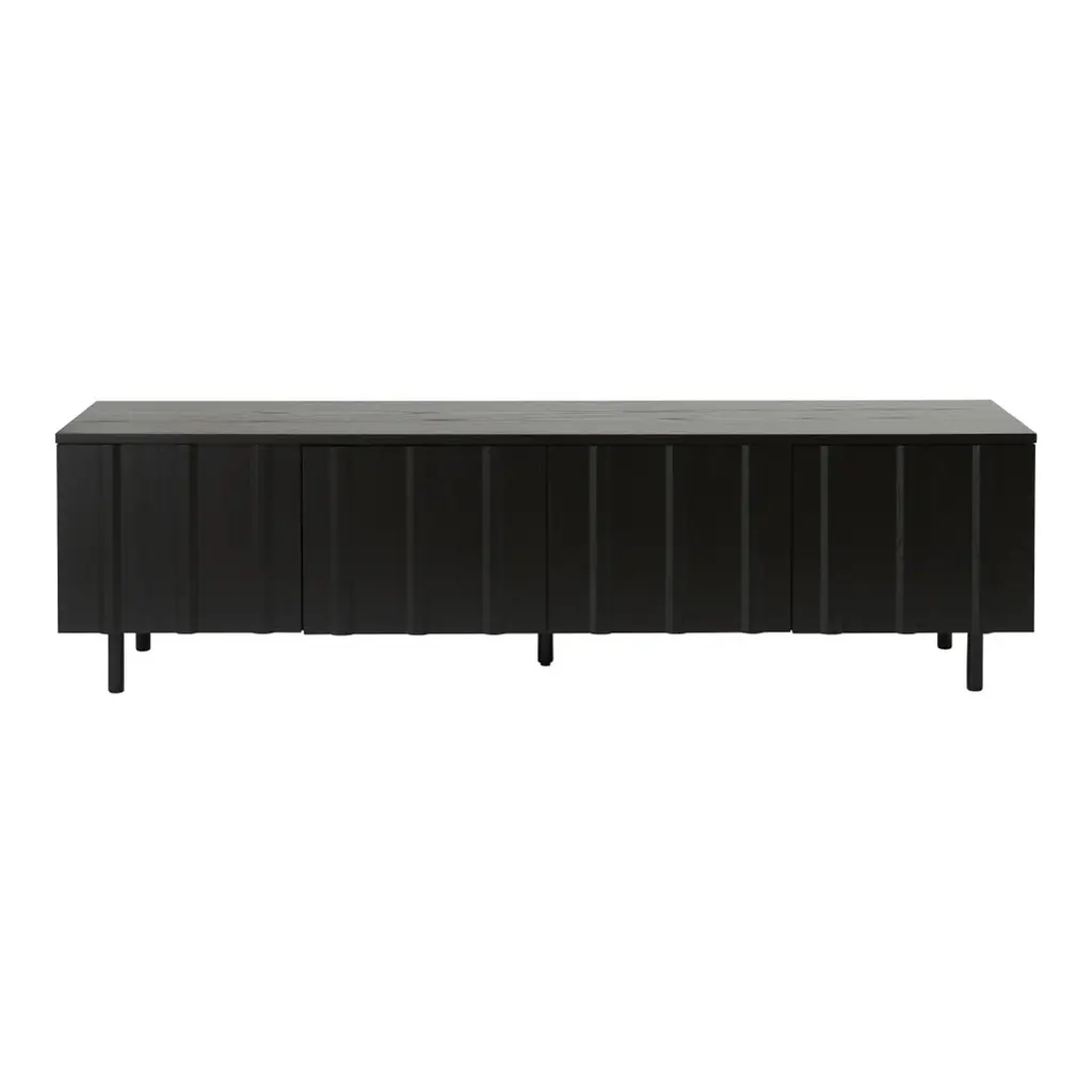 Rib sideboard and cabinet are timeless and elegant storage solutions. The design is inspired by the architecture of Nordic summerhouses from the 1960's with wooden slats adorning the façade creating an interesting and decorative exterior. Rib continues this architectural heritage by having trapeze-shaped wooden panels, which add character to the design. The wooden slats create a visual break in the uniform surface of the front and add depth and dynamics.To further reference the source of inspiration, Rib is designed in oak veneer with solid oak slats and base and equipped with a push latch, making handles redundant. This creates a harmonious expression mirroring a stringent wooden facade.The Rib collection consists of a cabinet and sideboard available in either lacquered oak veneer or painted and lacquered oak veneer. Both variants have removable shelves that can be adjusted in height, giving the possibility to store any object or belongings.Rib sideboard is a larger storage unit, making it perfect for the living room as a TV stand or in the hallway to store shoes, bags, and other everyday essentials.The cabinet is more compact than the sideboard, making it suitable for the bedroom for storage of clothes, or for the dining area to stock cutlery and tableware. Whatever the purpose, the collection accommodates both limited spaces and larger environments.Use the members of the Rib collection on their own or combine the two variants for an ultimate storage solution. Create a coherent interior design by choosing the same color wood or mix them to create a dynamic and personal expression.