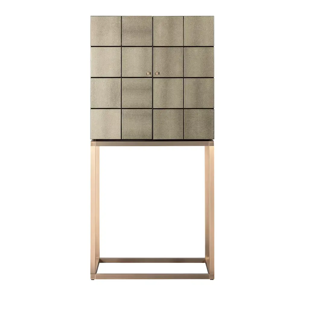 Riesling is marked by a large storage unit that lies on a thin linear structure in black lacquer. It features doors with Moonlight Decoration. The back of the doors is equipped with short shelves conceived to store glassware. Please contact the Concierge for other information.