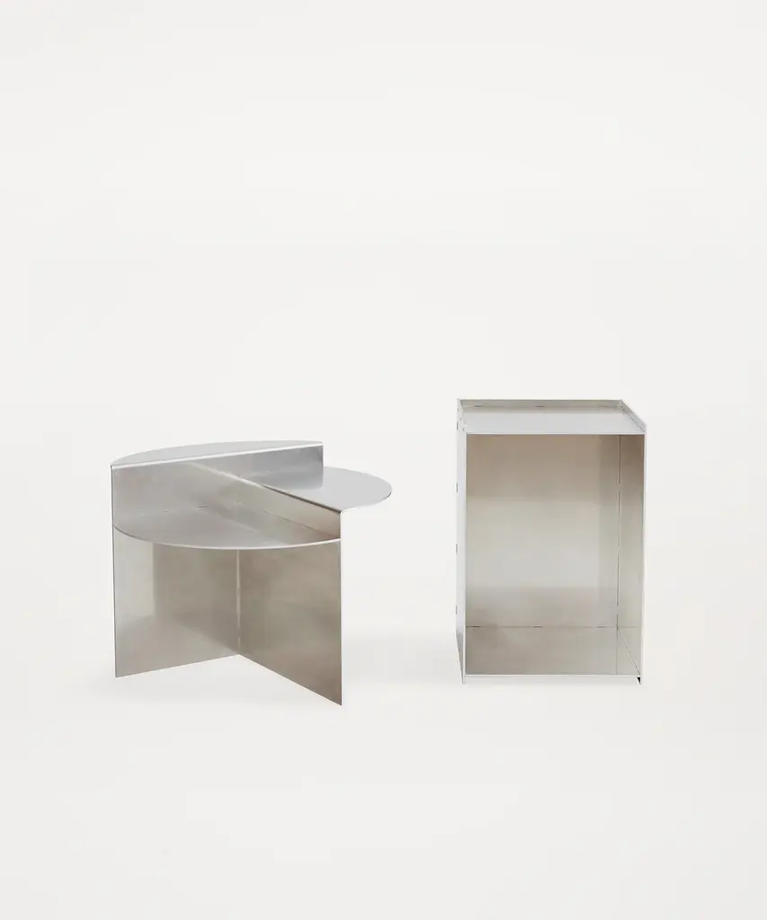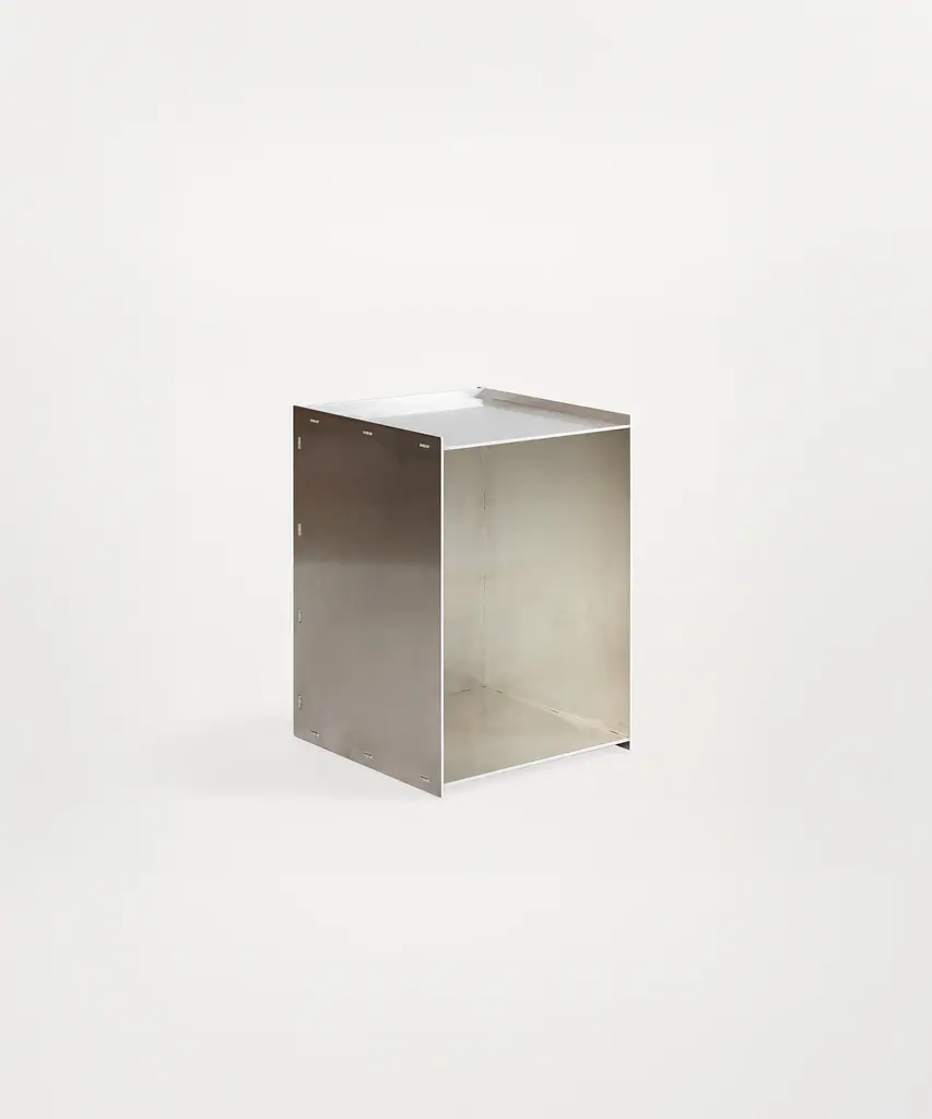 The Rivet Box Table is a sturdy, timeless piece of furniture that can be arranged vertically or horizontally and can be used as a table, a storage unit, a pedestal for display, or a combination of all three. Based on a riveting technique suitable for making perpendicular joints between separate, laser-cut raw aluminum sheets, the item is put together by hand using a hammer in a cold-forming assembly process developed by designer Jonas Trampedach in 2011. Designed by Jonas Trampedach for Frama - an interior and product design studio based in Copenhagen. The studio is a dynamic testing ground for new designs and projects, embodying their classical, yet boundary-pushing approach.