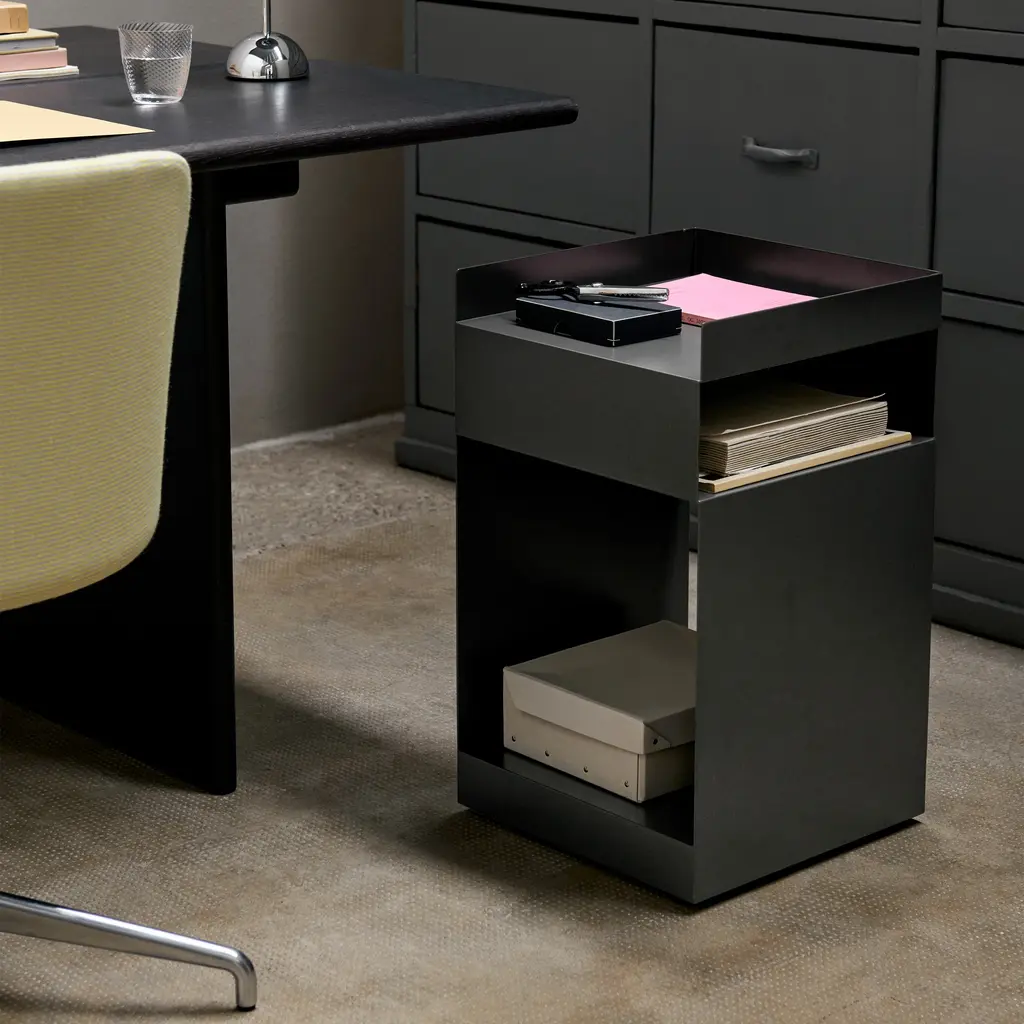 Effortlessly versatile and functional, the Rotate Trolley from &tradition is an elegant addition to any space. With its sleek design and discreet wheels, it can easily adapt to serve as an office trolley, bedside table, or bathroom storage unit. Its asymmetrical shape adds a touch of sophistication to its practicality. Highlights